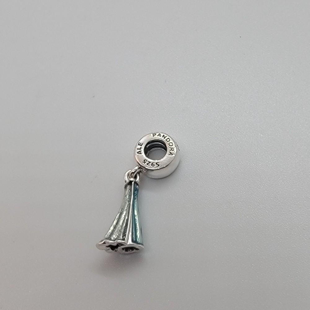 New Pandora Authentic Disney Elsa Dress Dangle Charm The charms are new, never worn. Some charms are used for pictures and advertising purposes only. All charms come in Jewelry Pouch with Pandora logo on it. Bracelet and Box NOT INCLUDED.