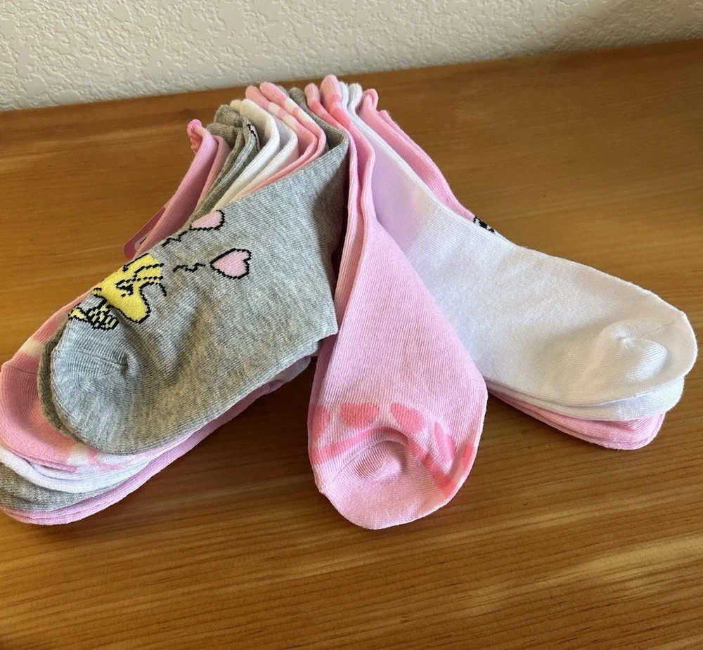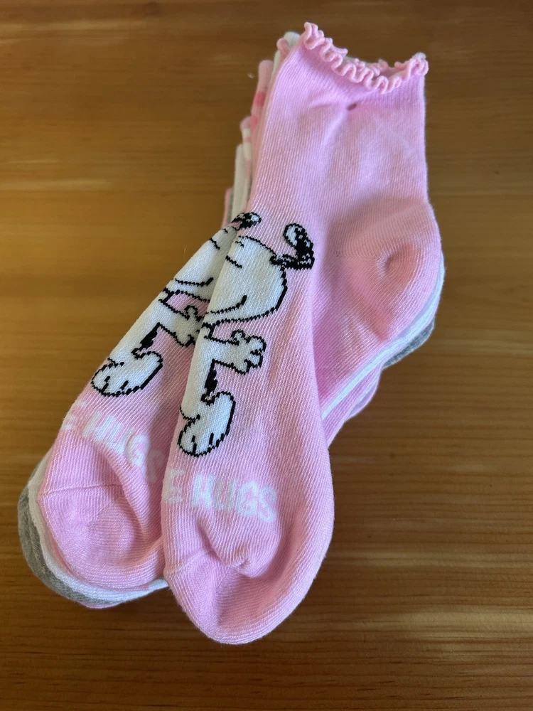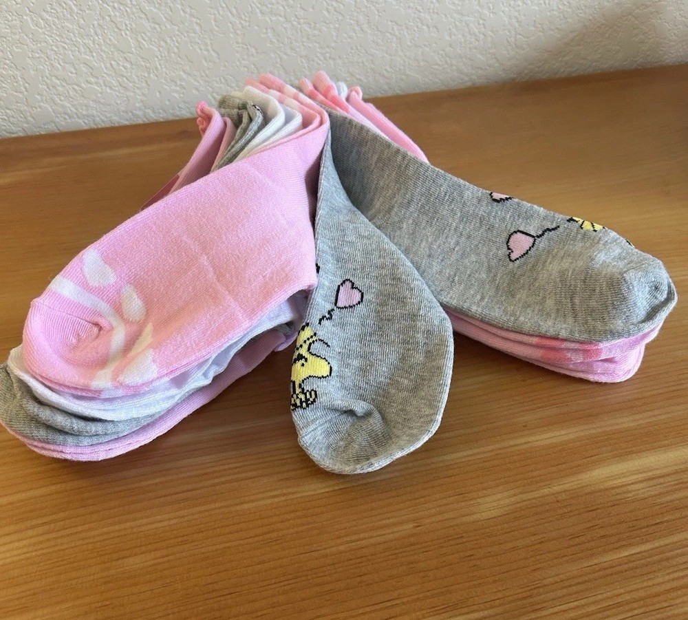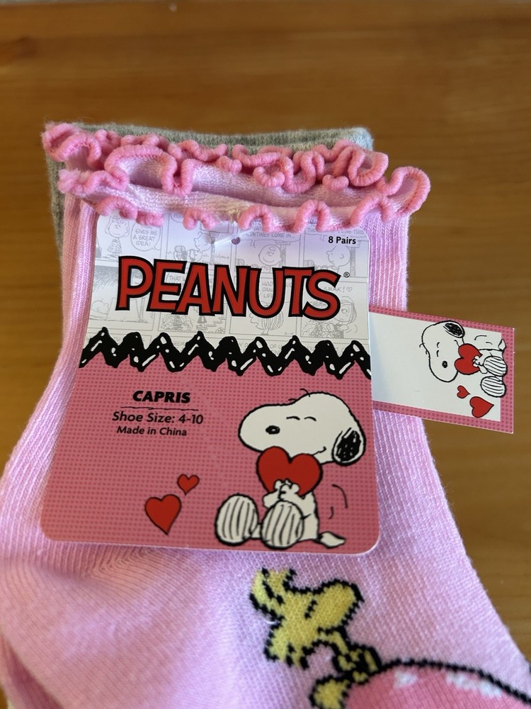 Get these adorable Peanuts Snoopy Woodstock socks! You'll love the colorful design featuring hearts and Snoopy! These socks are perfect for women with a size of 4-10 and are made of high-quality material for maximum comfort. Each pack includes 8 pairs of calf socks, making it a great value for your money. The socks are perfect for adding a touch of fun to your everyday outfit and are great for both casual and formal occasions. Don't miss out on these limited edition socks and get yours now! Thank you, GBC!