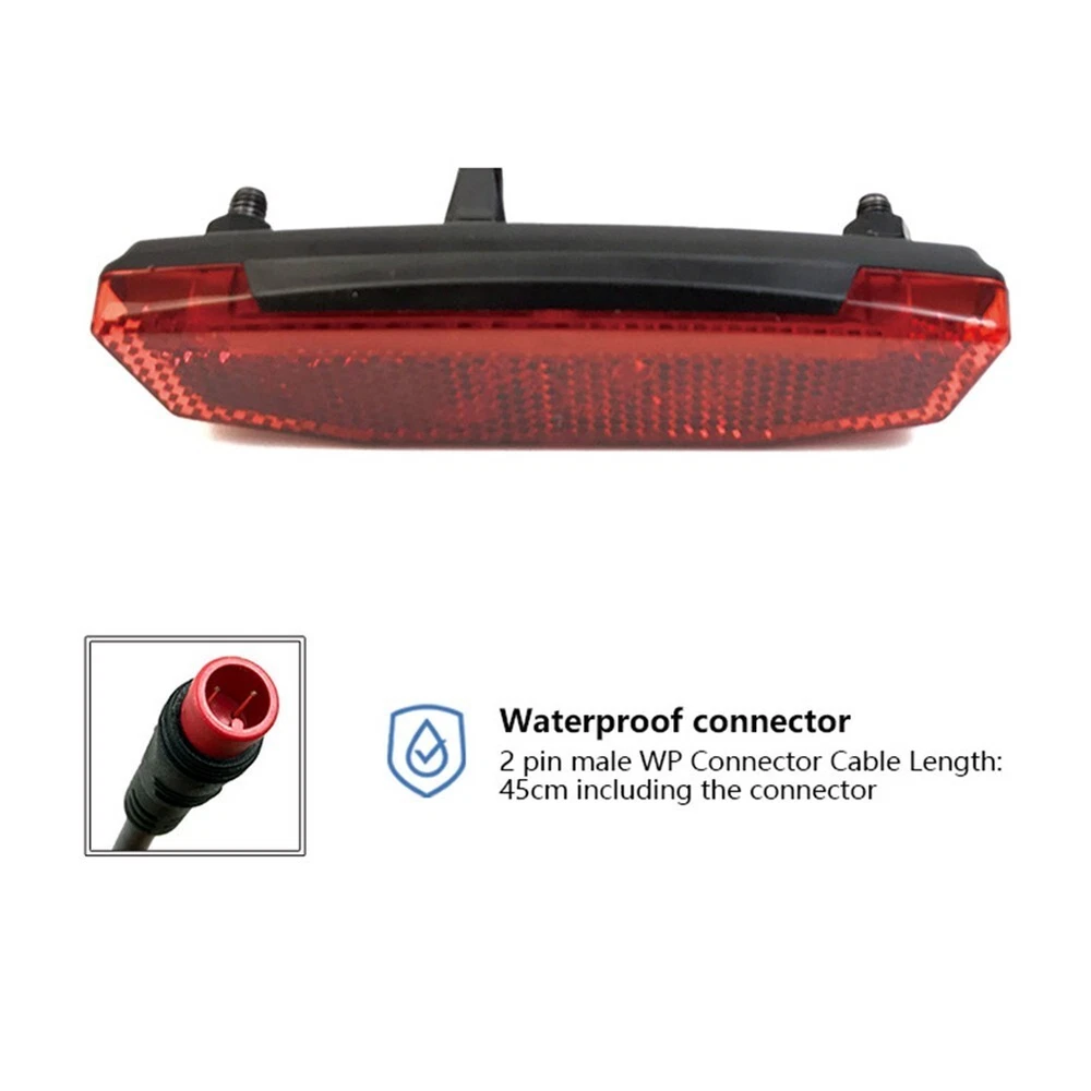 New Practical Rear Light Tail Light Plastic 45CM 6V-60V E-Scooter Ebike DESCRIPTION Description: *6V-60V LED Tail light E-bike Rear Lamp Electric Bicycle Ebike Motor kit *2 Pin male Waterproof Connector Cable Length:45CM including the connector *Simple and easy to install * brand new and high quality *Made of high quality material, and practical to use Specification: 1.Color: Black and Red 2.Material: Plastic 3.Voltage:6V/12V/24V/36V/48V/60V 4.:Waterproof 5.Application: for KT controller & *Pasion E-bike Motor kit 6.Cable Length: 45CM Package Includes: 1 * Tail light Note: 1. The real color of the item may be slightly different from the pictures shown on website caused by many factors such as brightness of your monitor and light brightness. 2. Please allow slight manual measurement deviation for the data. POLICES Shipping Payment WARRANTY We only ship to confirmed ebay Order addresses. Please comfirm that your Order address is in line with your shipping address. Please kindly note that the c ombined shipping is not provided because the shipping fee is calculated by weight. Also, the each additional item means exactly the the same color and size. It takes about 7 -15 working days to US; about 10-30 working days to other countries. Transit time may be a little delayed because of the bad weather and customs inspection . If you do not receive your item within 30 working days since payment finished, please contact us immediately for further assistance. Payment must be completed within 5 days. If you have any problems about payment, please contact us via ebay message. We strive for 100% customer satisfaction! Positive Feedback is very important to us. If you have any questions, p lease feel free to contact us via "Ask seller a question" . We will reply your email within 24 working hours.