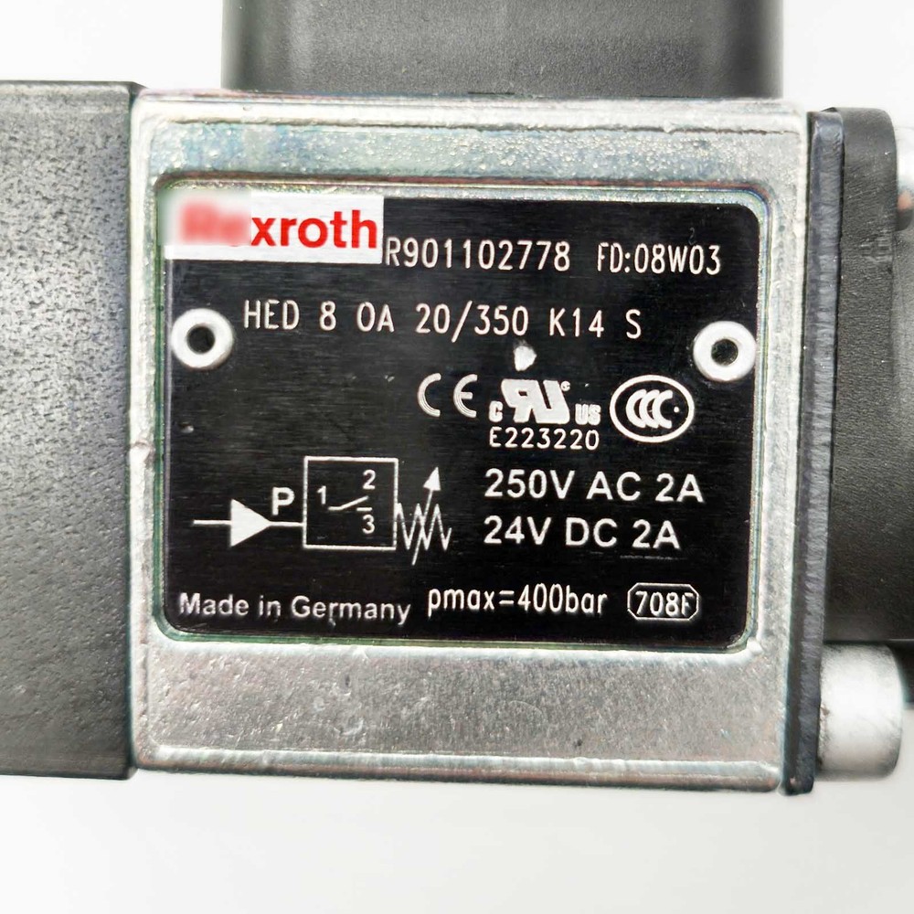 Product Description: Type: Pressure Switch Manufacture Part Number: HED8OA-2X/350K14S R901102778 Pressure R ange: 0 - 400 bar (0 - 40 MPa) Switch T ype: Microswitch, NC + NO dual contacts (without potential) Switching C urrent: 1 mA - 2.0 A Power S upply V oltage: 24V - 250V DC/AC Features: Shipping: Fast shipping from US. Please fill in the correct address and contact number on Ebay to prevent delivery delays. If you receive the product found damaged or missing accessories, please contact us in time, we will actively work for you to solve the problem!