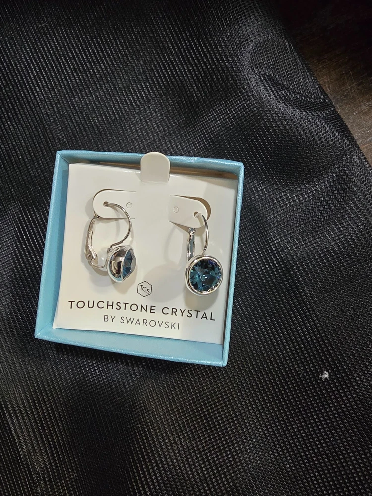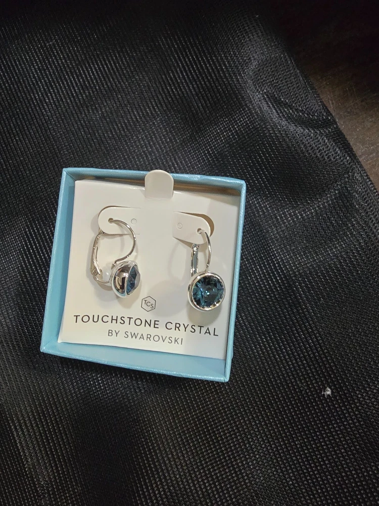 New, in original box Touchstone Crystal by Swarovski Bliss Earrings, Montana. These earrings are brand new, never worn. They originally sold for for $40 before they were retired. I'm asking HALF of that - $20! I send via USPS Priority, so that we can both track the package.