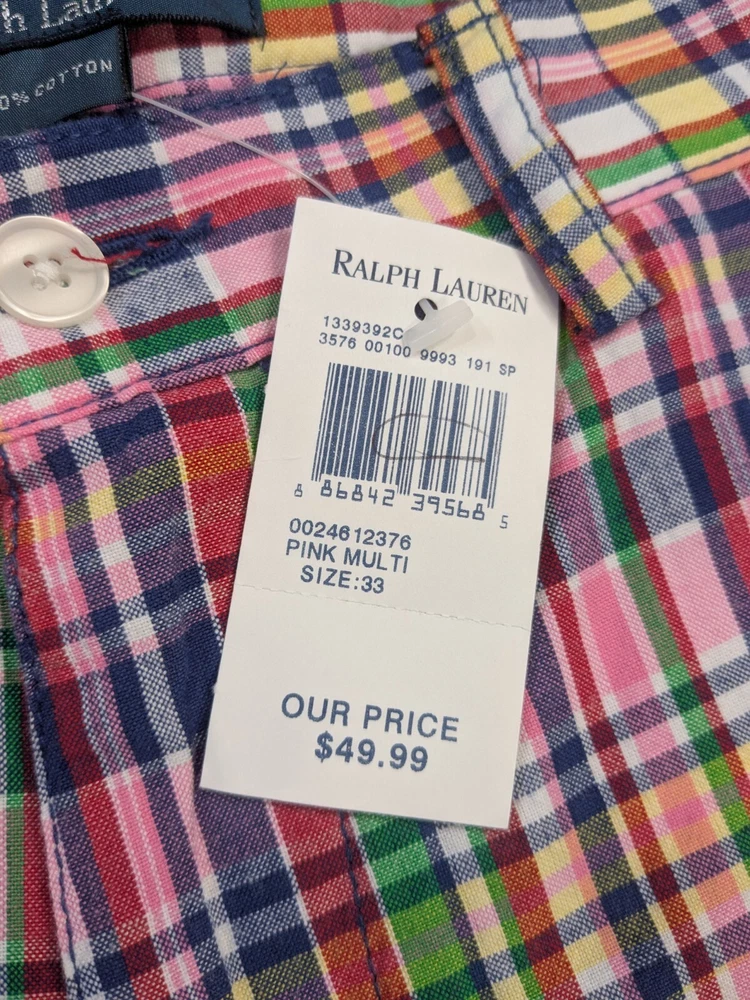 New Ralph Lauren Pink Green Blue Red Plaid Shorts NWT Size 33