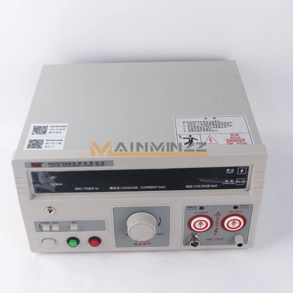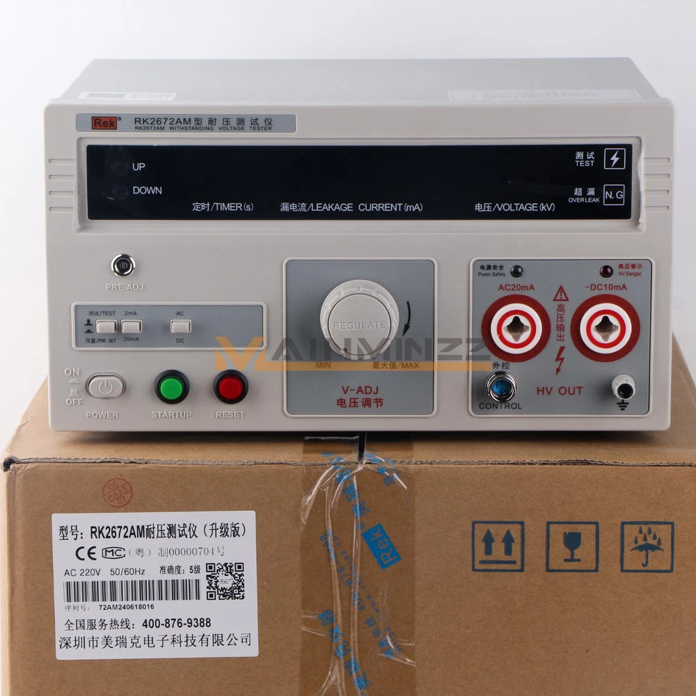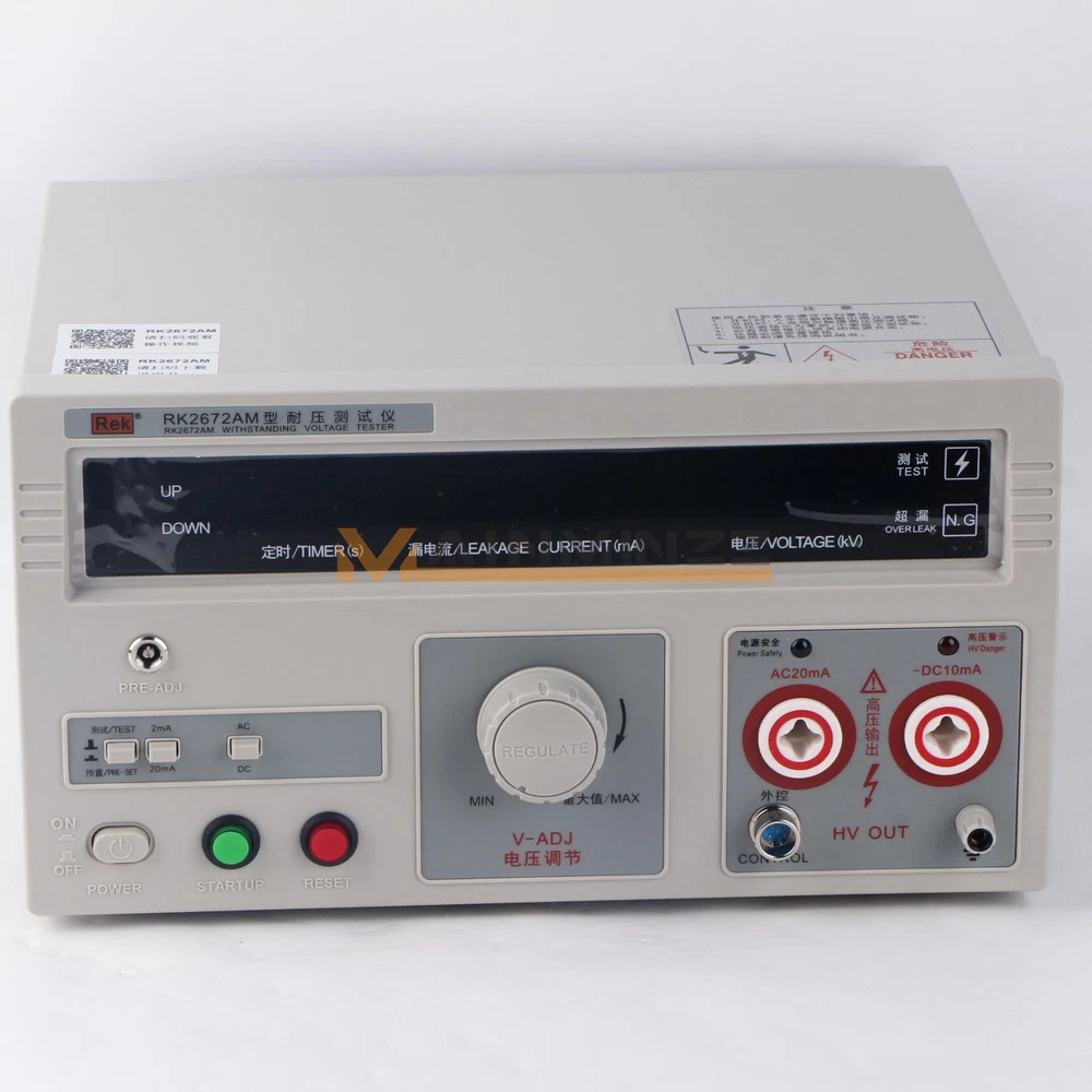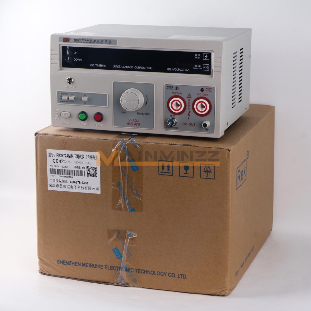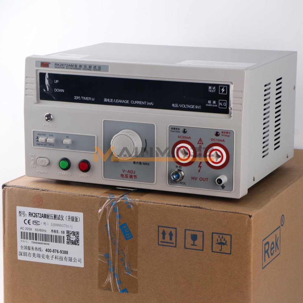 New Rek RK2672AM Withstand Hi-Pot 5KV(AC/DC) 100VA Tester Withstand Voltage RK267 series voltage withstand test instruments are for general- purpose HV test operation, It can be widely used for voltage withstand test in electrician’s assistant instrument , rubber-wooden facility , voltage convertor , wires , power meter , motor, power supply plug, cables and all kinds of electronic and electric products. As the launch of the national security standard, Voltage withstand instrument has become one of necessary withstand test instruments to the radio and electronic products manufacturer. Operating request: Environmental temperature 0~40 ℃ R elative dumidity≤75% Paraments Model RK2672AM Description Klgital display with remote control Test Voltage (AC) 0~5KV +/-5% Test Voltage (DC) 0~5KV +/-5% Leakage Current (AC) 0~2/20mA +/-5% Leakage Current (DC) 0~2/10mA +/-5% Timing (s) 0~99s; Manual control Pmax 100VA Input Voltage 220V Weight 24LB Details Pre-used Caution Read the following items carefully before operating RK267 series voltage withstand test instrument 1. Use three-hole power supply plug and insure GND connection well. 2. GND port and power supply GND port should be connected well 3. Wear insulation glove, stand on insulation mat 4. Anti-clockwisely circumvolve “ V-ADJ ” rotary switch to the maximum before turn on test instrument. 5. Before preset all functions, reset instrument 6 . Don ’ t connect test port and test wire when doing test 7. Don ’ t connect HV output port with shield box or GND wire to avoid instrument damage. 8. Turn off power when accident take place 9. Examine and repair when Indicator or annunciator is out of function 10. Operate carefully to avoid hazard when take the remote test. 11.The instrument must be placed on the worktable of conductive materials 12.The operator can not wear clothes with metal decoration or wear metal accessories 13.When the tester is in the test conditions, the test line, the test probes, output end , and the test objects are all with high pressure, do not touch! Item Included: Withstand Hi-Pot Tester - RK2672AM 1×Withstand voltage test equipment 1×High voltage test bar 1×Remote control test bar 1×Ground wire 1×power cord Notice: Because,the international air shipping forbid to ship liquid,powder and batteries, If you purchased goods containing such items, we will not be putting them packing. Thank you for your support. Payment must be made within 12 days after the auction/bid ends, or eBay will open Unpaid Item case automatically later. Please read this before buying International Shipping may Be Delayed Due to Customs. Customers are Responsible For All Import Charges, Tariffs, Duties, Taxes, and Fees Associated with Import of the product. Shipping Charges does not include any Import Charges, Tariffs, Duties, Taxes, and Fees Associated with it. We are not responsible for undeliverable address. We reserve the right to charge the shipping fee again for returned items due to wrong address. Items are generally shipped within 10 business day after your payment has been cleared (Sat. & Sun. excluded.) Dear friend, your happy is very important to me!.we stand behind every product we sell.Your bid is a contract - Place a bid only if you're serious about buying the item. If you are the winning bidder, you will enter into a legally biding contract to purchase the item. If payment is not received within 7 days, item may be offered to the next highest bidder or relisted at the seller's sole discretion.If you're not pleased with your purchase, we'll be happy to make an exchange or refund the product price less S&H within 7 days of your purchase. For any exchange or refund, we need the original receipt or a record of the purchase in our system, and the product must be in its original condition, including the box, packaging, and all accessories.Shipping and handling charges are not refundable. We are professional EBAY sales team and lots of ebay buyers very satisfied with our services.You can enjoy top-quality product and high-quality services from us, Trust me that you will have a pleasant shopping experience in here. Please contact us with any comments, questions or suggestions that you may have bysending ebay message, All the mail will be replied within 24 hours. Please ensure your mail box would not blocked / filtered our mails.we will be happy to assist you.please feel free to contact us for WHOLESALES deal,we will surely give you a satisfatory price.We would try our best to serve you with any question / problem. Please contact us first before leaving Negative / Neutral Feedback or open any cases.We work 6 Days a week From 9:00am - 6:00pm Monday - Saturday CHINA Time.