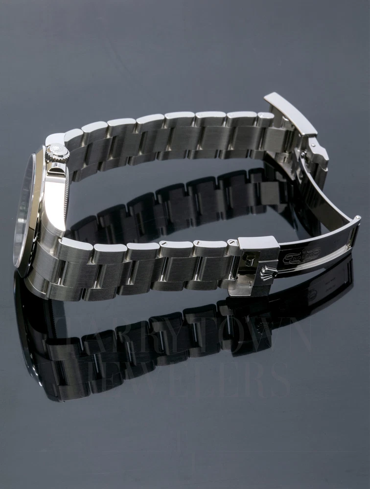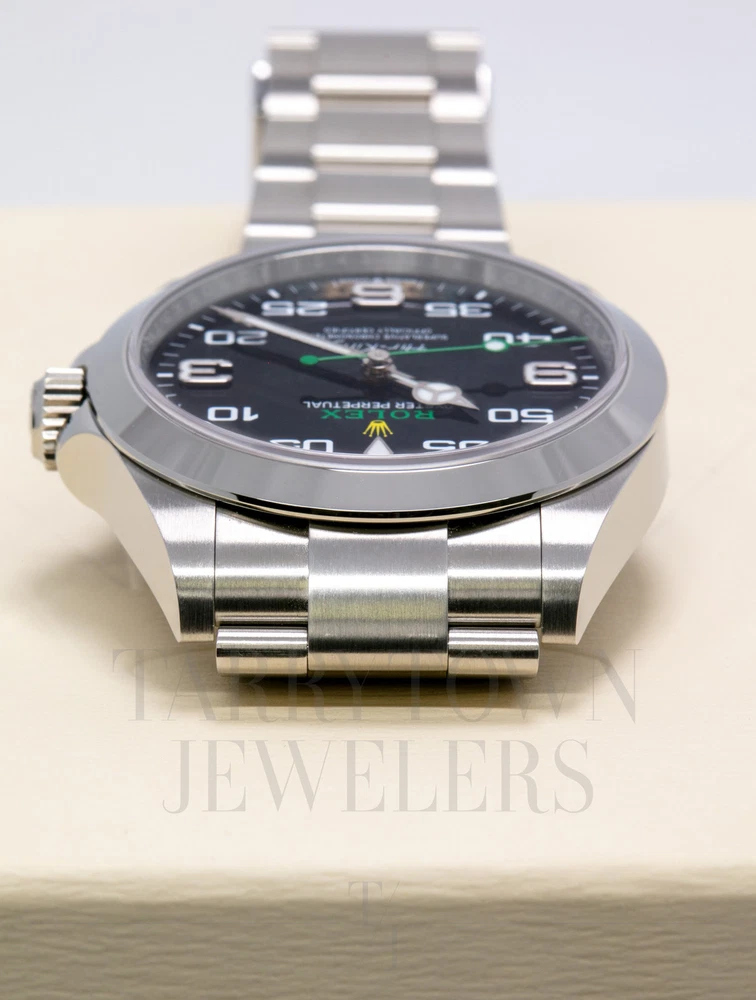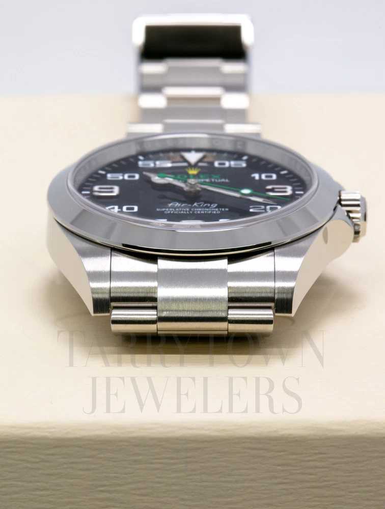 Title Air-King 126900 $9,450.00 PRODUCT DESCRIPTION New gents Rolex Air-King in stainless steel, Ref# 126900. On a stainless steel Oyster bracelet with a flip-lock deployant clasp. Smooth bezel with a sapphire crystal. The case diameter is 40 mm. Self-winding movement. Black dial with applied, framed, luminescent-filled, and painted Arabic numerals. With the box, warranty booklet only, warranty booklet holder, green hangtag, and papers dated 2023. New condition. We sell our watches on multiple platforms and do our best to take sold items down immediately. Occasionally, an item will sell on more than one platform; in that case, we sell to the first purchaser. If you would like to check on availability, feel free to reach out before placing your order. We respond to all messages Monday-Friday 10-5 EST. Shipping Policy Shipping Costs Tarrytown Jewelers does not include shipping costs on the listed prices. Shipping costs are the buyer's responsibility and vary based on weight, value, and location. The costs of returns are item-specific. Sales tax or other fees on orders shipping anywhere outside New York State depend on the destination and their applicable laws. Shipping to the Continental USA Tarrytown Jewelers ships using UPS, FedEx, and USPS. We ship express overnight on all orders. All shipments are fully insured against loss, theft, or damage during transit. All shipments require an adult signature to complete the delivery. We do not ship over the weekend (US EST) to avoid packages stalling in transit. Special arrangements can be made for Saturday deliveries for an additional cost and may not be available in all areas. Shipping to Outside the Continental USA Tarrytown Jewelers ships international packages using FedEx International unless other arrangements are necessary. All shipments are fully insured against loss, theft, or damage during transit and all require an adult signature to complete the delivery. Arrival times vary based on location and may be affected by conditions beyond the control of our shipping vendors. Duty and or other fees associated with applicable international shipments are the buyer's responsibility. Shipping to a Non-Billing Address Tarrytown Jewelers is required to ship to the billing address when a credit card is used. If the buyer requires a package shipped to an alternate address, the address must be filed with the buyer's credit card company before any shipment is made. Shipping Within New York State Tarrytown Jewelers is located in New York and required by law to collect sales tax on all deliveries within the state. P.O. Boxes Tarrytown Jewelers can deliver to P.O. Boxes when using USPS. APO/FPB Military Addresses Tarrytown Jewelers delivers to APO/FPO Military Addresses and is handled on a case-by-case basis. Shipment Tracking For insurance purposes, Tarrytown Jewelers is unable to divulge tracking numbers. Please reach out to us via eBay Messages and we will provide the most up to date status on your shipment. Return Policy Tarrytown Jewelers offers a full 14-day money-back guarantee for purchases made via eBay. The 14-day time period begins upon receipt of the item. This period will be extended within reason in certain situations, but only with prior consent from Tarrytown Jewelers. Fees to return items including but not limited to; shipping, insurance, and import duty, are the buyer's responsibility where applicable. Returned items must not be worn, and show no visible signs of wear. Special orders and New items are final sales. Our Warranty All of our pre-owned watches come with a 15-month functionality warranty. Damage caused by negligence and misuse, including and not limited to; broken crystals, scratched cases, scratched bracelets/buckles, worn straps, broken components, and movement issues deemed to be the result of an impact or abuse of any nature are not covered by the warranty. About Us Tarrytown Jewelers started in 1972 by Steve and Marlene Dubinsky as a small firm dealing in rare coins, jewelry, and precious metals. In 1978 Tarrytown Jewelers took a dramatic step forward and became one of the first companies in the United States to specialize in the acquisition and sales of fine pre-owned wristwatches. Tarrytown Jewelers enjoys a worldwide reputation as one of the leading sources of fine horological items. Since its inception, Tarrytown Jewelers has been dedicated to serving its clients without compromise, in areas ranging from restoration to the acquisition of the most sought-after wristwatches. Customers trust Tarrytown Jewelers to the discreet purchase and brokering of fine watches, diamonds, and jewelry. Powered by