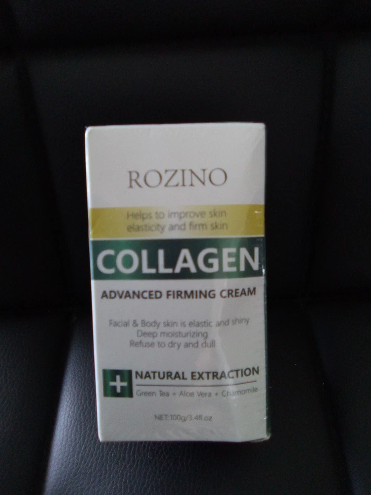 The Rozino Collagen Advanced Firming Cream with Green Tea and Aloe Vera (100g) is a skincare product formulated to help firm, hydrate, and rejuvenate the skin, particularly by targeting signs of aging and skin sagging. This cream combines collagen with powerful plant-based ingredients to support skin health and improve its appearance over time. Key Ingredients & Features: Collagen : Collagen is an essential protein that provides structure and elasticity to the skin. As we age, the natural production of collagen decreases, leading to wrinkles and sagging skin. This cream helps replenish and support collagen production, promoting firmer and more youthful-looking skin. Green Tea : Known for its antioxidant properties, green tea helps to protect the skin from environmental damage, reduce inflammation, and fight signs of aging by neutralizing free radicals. It also has soothing and anti-inflammatory benefits. Aloe Vera : Aloe vera is famous for its hydrating and calming properties. It helps to nourish and moisturize the skin, reducing redness and irritation while keeping the skin soft and smooth. Hydrating and Firming : This cream is designed to moisturize and improve skin elasticity, making it ideal for those looking to combat sagging or dry skin while promoting a firmer, smoother texture. Benefits: Improves Skin Firmness : The collagen in the formula helps to firm and tone the skin, making it appear more lifted and youthful. Hydrates and Moisturizes : Aloe vera and green tea provide deep hydration, helping to replenish moisture and keep the skin soft and smooth. Reduces Fine Lines : Regular use can help reduce the appearance of fine lines and wrinkles, giving the skin a more youthful and refreshed look. Soothes and Calms : Green tea and aloe vera work together to calm irritated skin, making this cream suitable for sensitive skin as well. How to Use: Apply the cream to clean, dry skin, especially in areas prone to sagging or fine lines (such as the face, neck, or décolletage). Gently massage in circular motions until fully absorbed. Use daily, ideally as part of your morning or evening skincare routine.