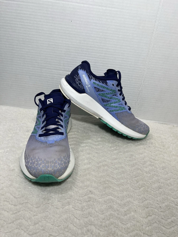 New Salomon Sonic 5 Balance Women’s Size 8 Trail Running Shoes Purple Mint. Sneaker is in used condition and has signs of wear but sneaker is still in great condition. Upper material is in great condition and clean , inside is clean and the soles are in great condition. Nice comfortable sneaker for casual wear. Condition is pre-owned. Shipped with usps priority mail. Sold as pictures. Thank you! Feel free to message me for any questions. Thank you