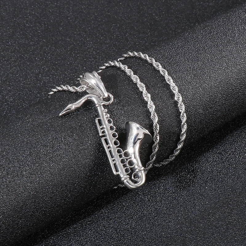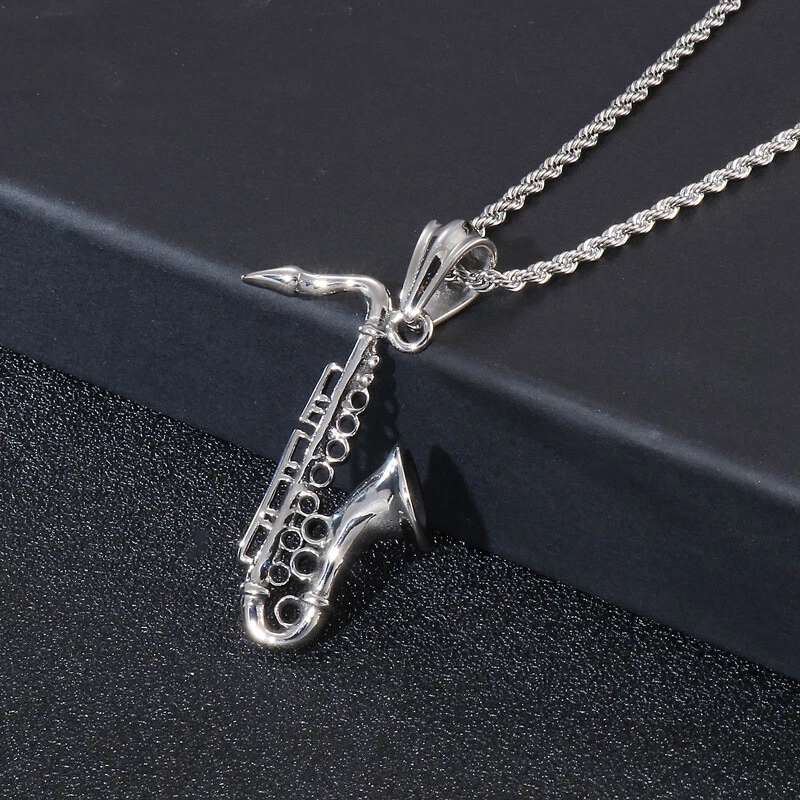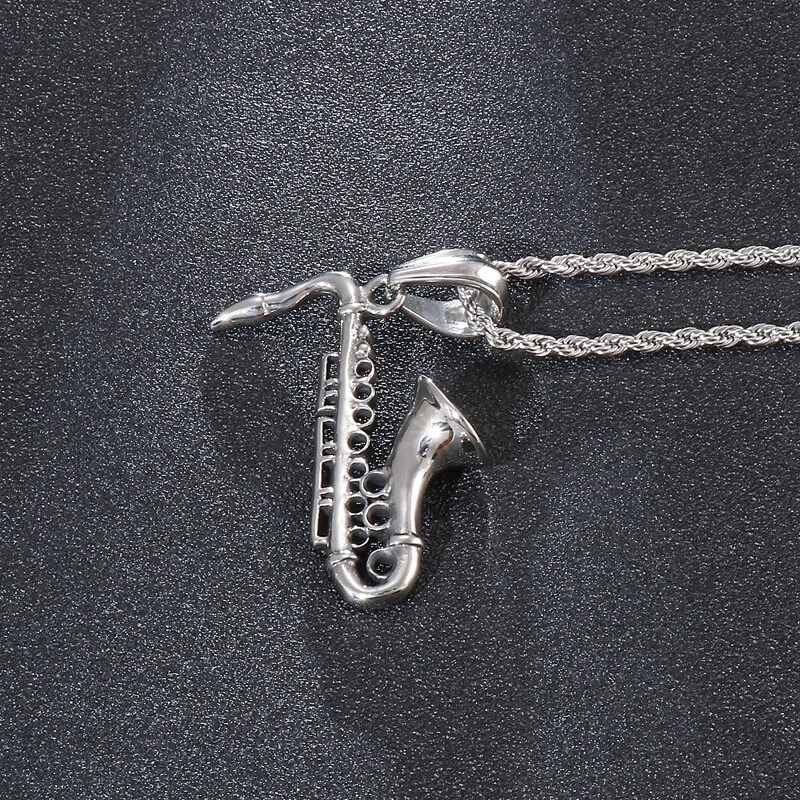 New Sax titanium steel instrument pendant men's necklace accessories