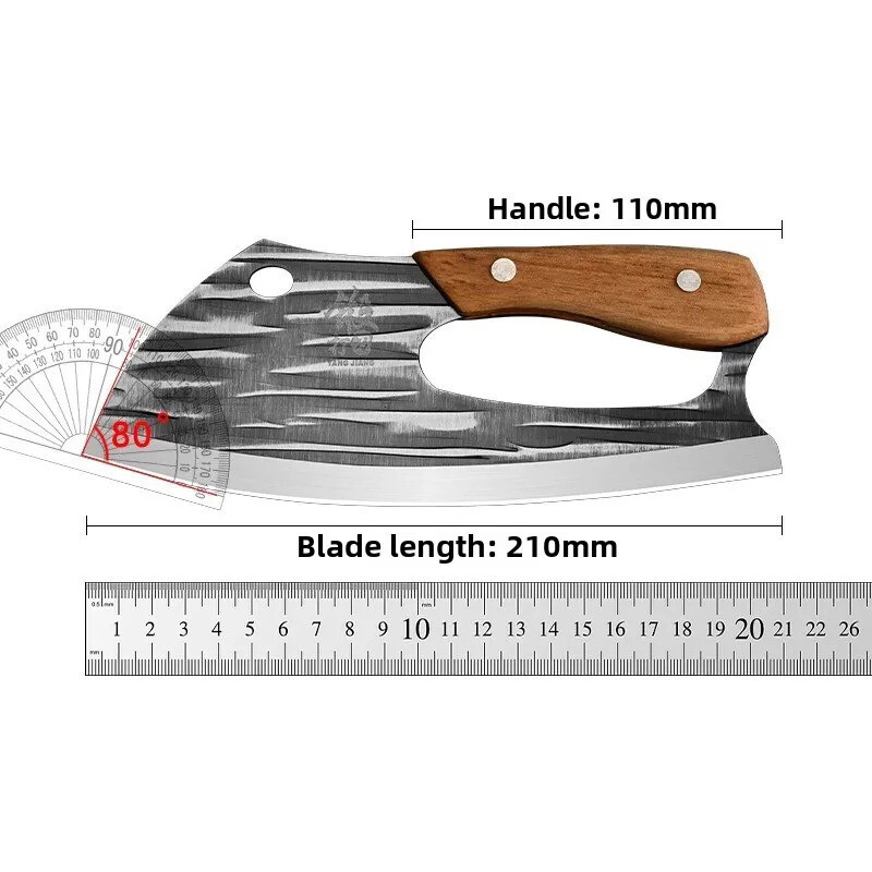 New Sharp Kitchen Knife Full Blade Stainless Steel Multi-functional Chef's Knife Features Extremely sharp: Each blade is made of forged high carbon steel. The blades are then manually polished and finally satin treated - providing extremely sharp and efficient edges that can be maintained for a long time even in daily heavy use. Comfort and safety: The handle is made of colored wood, which is easy to operate, comfortable, and non slip. The balance between the blade and handle of each knife is very even. If you frequently use the knife to handle large amounts of ingredients, the pressure on the arm of the balance knife is much smaller. Durable: Made of tableware grade steel with a hardness of 58 Rockwell, the blades are neither rusty, corrosive, nor discolored. You still need to hand wash the knives and keep them dry to maintain their appearance. Precision forging creates durable cutting tools. Item specifics Material: Stainless Steel Handle: Solid wood grip Handle Length: 11cm Blade length: 21cm Blade Angle: >60°