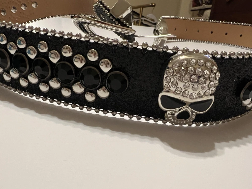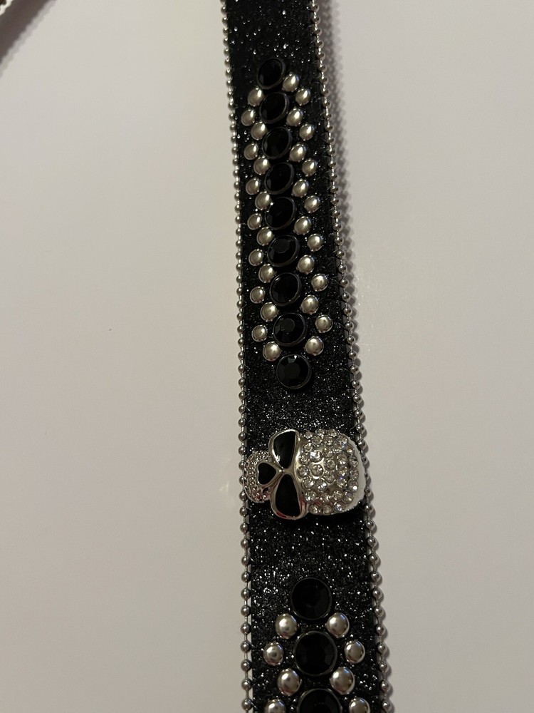 Add a touch of Western style to your outfit with this stunning Skull Pirate belt. The black leather belt is accented with studs, buckles, and rhinestones, making it the perfect accessory for any cowgirl or pirate outfit. The belt is 1.5" wide and has an adjustable buckle, ensuring a comfortable fit for all sizes. This belt is perfect for those who love the Western theme and want to add a unique touch to their outfit. The Skull Pirate brand is known for its high-quality products, and this belt is no exception. Made with silver hardware and accented with a skull and cowgirl theme, this belt is sure to make a statement. Whether you're dressing up for a costume party or just want to add some flair to your everyday outfit, this belt is the perfect choice.