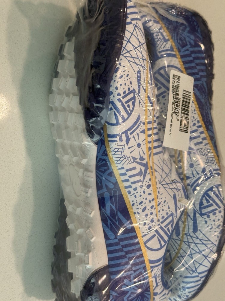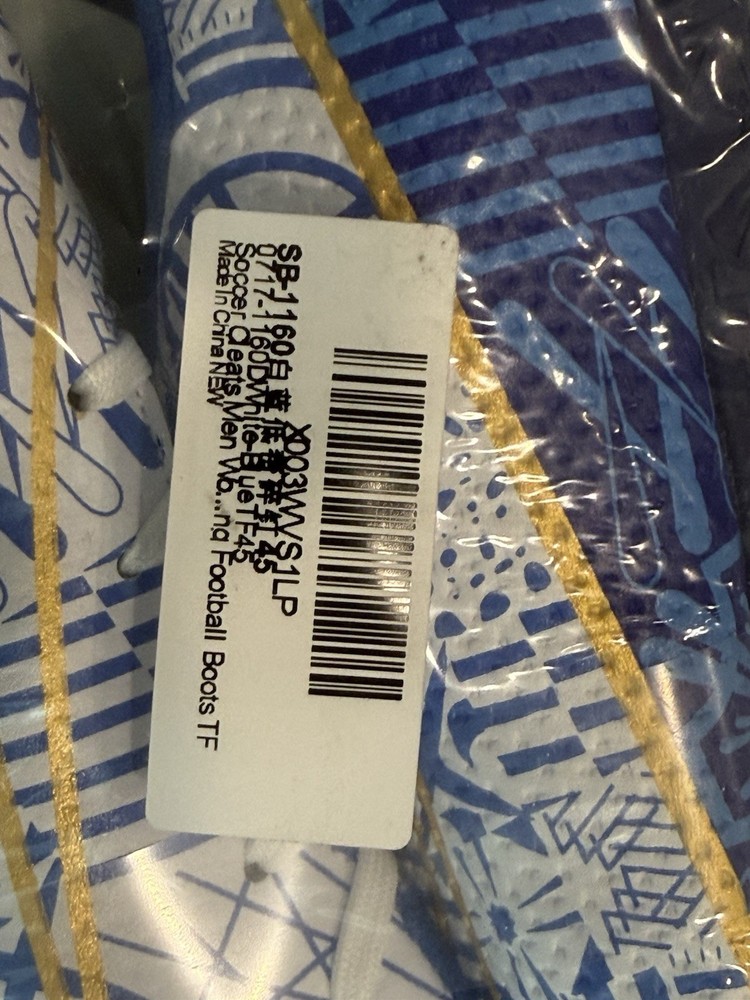 The product is a pair of new soccer cleats in size (45 Euro) 11.5 / 12 , with a main color of blue. These unbranded cleats are designed specifically for soccer players, featuring a durable construction and comfortable fit. The limited time pre-season pricing makes them a great deal for those looking to upgrade their footwear for the upcoming season.