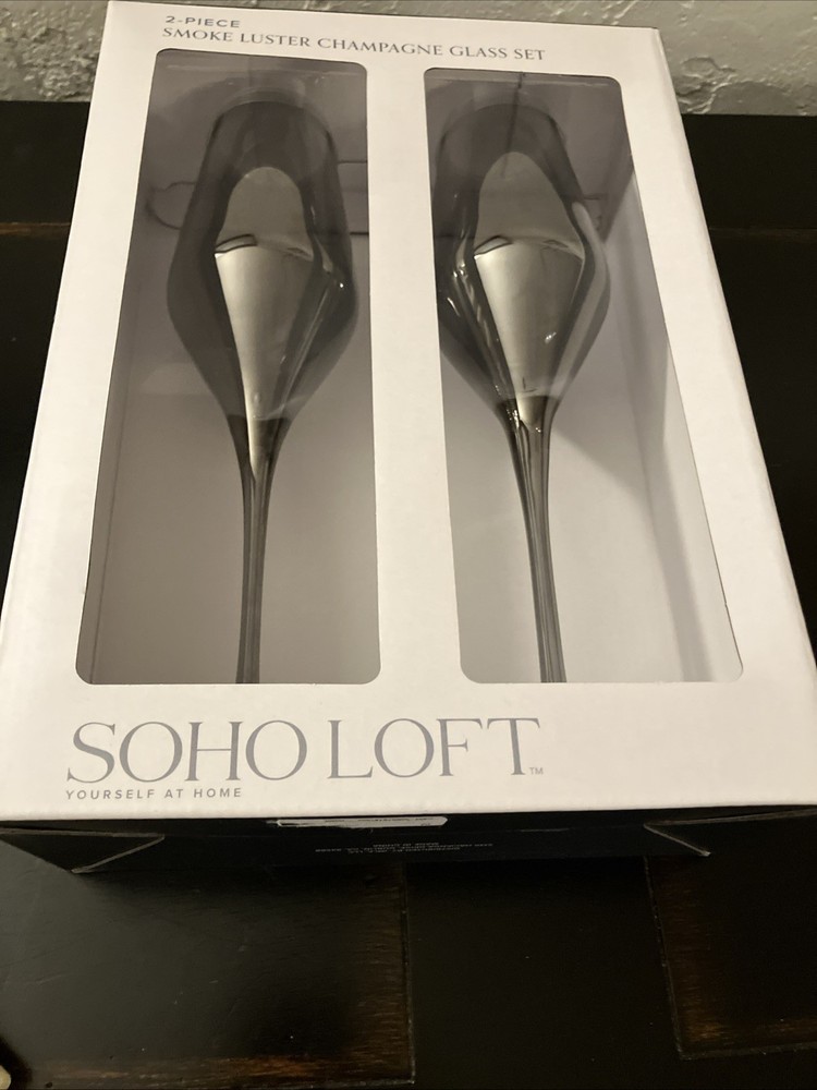 Elevate your toasting experience with the Soho Loft Smoke Luster Champagne Glasses. This set of two glasses is crafted from premium quality glass, ensuring durability and a sublime drinking experience. The sophisticated smoke color adds an air of elegance to your celebratory moments, making it an ideal choice for any occasion. The glasses come complete with a presentation box, making them a perfect gift for the champagne enthusiast in your life. Each glass has a 8 oz. capacity and features a solid color pattern with a round shape, embodying a contemporary design that complements any table setting. Whether it's a holiday gathering or a intimate dinner, these glasses will beautifully serve your favorite bubbly.