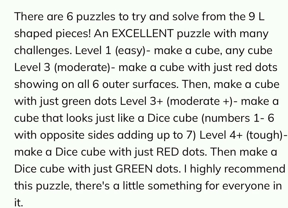 Soma Cube wooden 3D puzzle by Creative Crafthouse. This puzzle is factory sealed and unused, still in its original packaging and includes the original instruction sheet. The Soma Cube is a classic brain teaser specifically created for people with Alzheimer’s. It’s made up of 7 wooden pieces that assemble into a cube and many other shapes. Level is easy. • Brand: Creative Crafthouse • Puzzle type: Soma Cube (3D wooden brain teaser) • Size (assembled): approx. 2.5in • Condition: New / sealed in package • Includes: original directions Great as a gift, desk puzzle, or for anyone who enjoys logic and spatial reasoning challenges. Ships carefully packaged. Feel free to message with any questions!