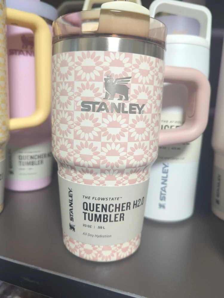 Pattern:floralBrand:StanleyMaterial:Stainless SteelColor:PinkFeatures:Handle, Insulated, With StrawLid Type:TwistCountry of Origin:ChinaType:TumblerCharacter Family:EasterModel:THE QUENCHER H2 .0Personalize:NoBeverage Type:Hot or ColdTheme:Easter, HolidayCapacity:20 oz