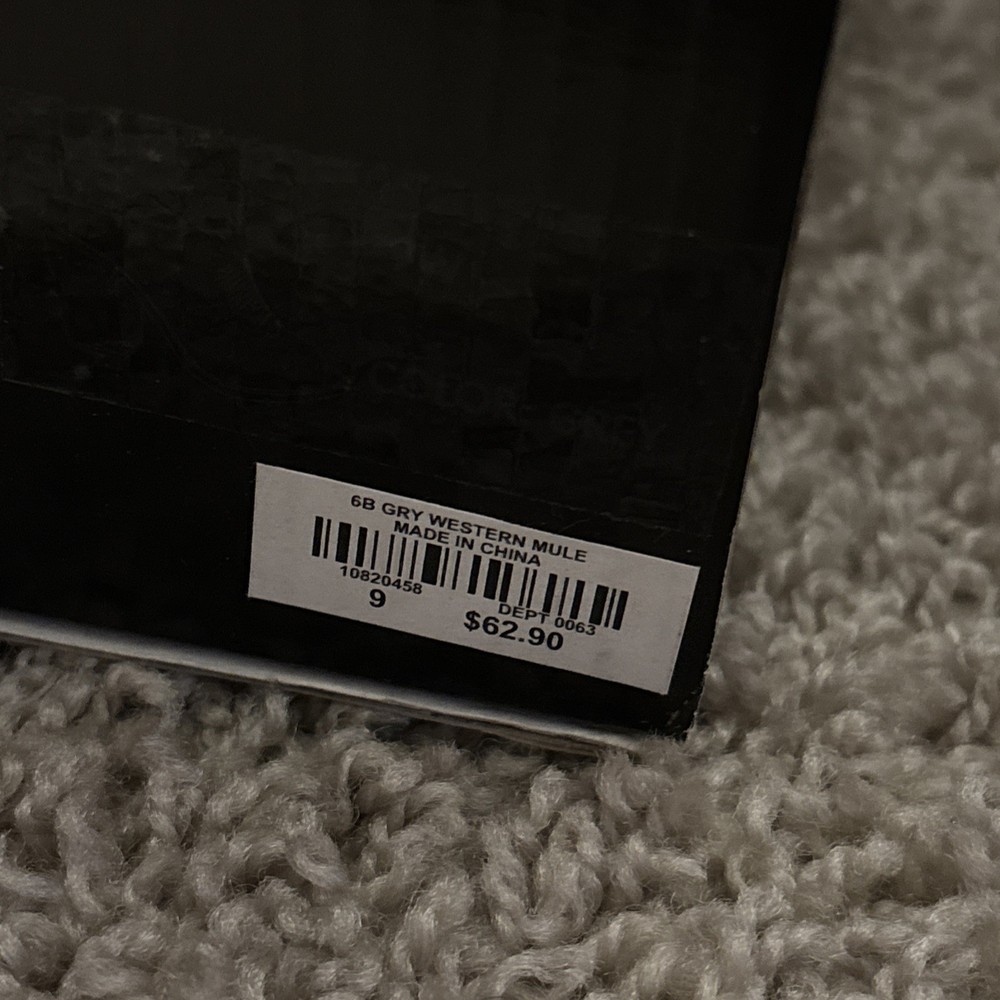 New TORRID 9W Grey Faux Suede Chunky Heel Open Toe Mule Western Women