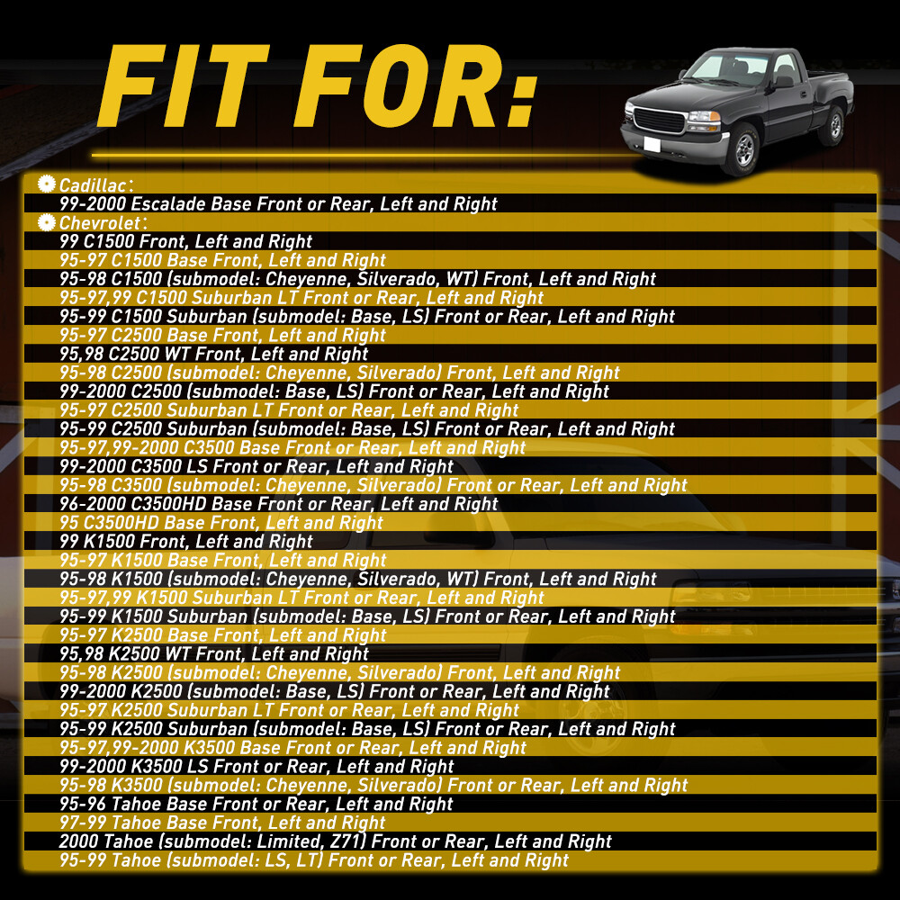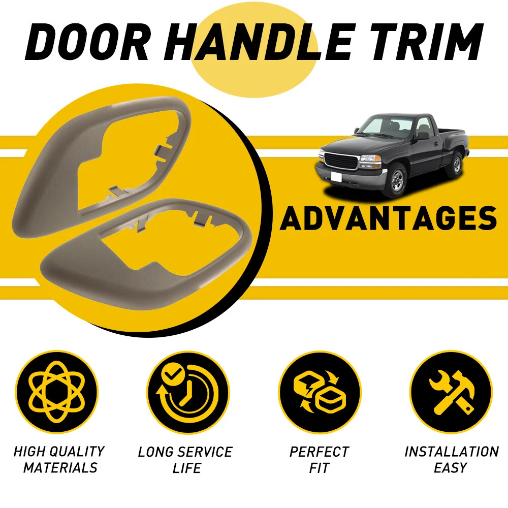 Interior Inside Door Handle Trim Bezels Fit For Cadillac, Chevrolet,GMC etc. Fit for: Cadillac: 99-2000 Escalade Base Front or Rear, Left and Right Chevrolet: 99 C1500 Front, Left and Right 95-97 C1500 Base Front, Left and Right 95-98 C1500 (submodel: Cheyenne, Silverado, WT) Front, Left and Right 95-97,99 C1500 Suburban LT Front or Rear, Left and Right 95-99 C1500 Suburban (submodel: Base, LS) Front or Rear, Left and Right 95-97 C2500 Base Front, Left and Right 95,98 C2500 WT Front, Left and Right 95-98 C2500 (submodel: Cheyenne, Silverado) Front, Left and Right 99-2000 C2500 (submodel: Base, LS) Front or Rear, Left and Right Inside Interior Door Handle Trim Tan Bezels Pair Set NEW for Chevy GMC Truck Interior Inside Door Handle Trim Bezels Fit For Cadillac, Chevrolet,GMC etc. Fit for: Cadillac: 99-2000 Escalade Base Front or Rear, Left and Right Chevrolet: 99 C1500 Front, Left and Right 95-97 C1500 Base Front, Left and Right 95-98 C1500 (submodel: Cheyenne, Silverado, WT) Front, Left and Right 95-97,99 C1500 Suburban LT Front or Rear, Left and Right 95-99 C1500 Suburban (submodel: Base, LS) Front or Rear, Left and Right 95-97 C2500 Base Front, Left and Right 95,98 C2500 WT Front, Left and Right 95-98 C2500 (submodel: Cheyenne, Silverado) Front, Left and Right 99-2000 C2500 (submodel: Base, LS) Front or Rear, Left and Right 95-97 C2500 Suburban LT Front or Rear, Left and Right 95-99 C2500 Suburban (submodel: Base, LS) Front or Rear, Left and Right 95-97,99-2000 C3500 Base Front or Rear, Left and Right 99-2000 C3500 LS Front or Rear, Left and Right 95-98 C3500 (submodel: Cheyenne, Silverado) Front or Rear, Left and Right 96-2000 C3500HD Base Front or Rear, Left and Right 95 C3500HD Base Front, Left and Right 99 K1500 Front, Left and Right 95-97 K1500 Base Front, Left and Right 95-98 K1500 (submodel: Cheyenne, Silverado, WT) Front, Left and Right 95-97,99 K1500 Suburban LT Front or Rear, Left and Right 95-99 K1500 Suburban (submodel: Base, LS) Front or Rear, Left and Right 95-97 K2500 Base Front, Left and Right 95,98 K2500 WT Front, Left and Right 95-98 K2500 (submodel: Cheyenne, Silverado) Front, Left and Right 99-2000 K2500 (submodel: Base, LS) Front or Rear, Left and Right 95-97 K2500 Suburban LT Front or Rear, Left and Right 95-99 K2500 Suburban (submodel: Base, LS) Front or Rear, Left and Right 95-97,99-2000 K3500 Base Front or Rear, Left and Right 99-2000 K3500 LS Front or Rear, Left and Right 95-98 K3500 (submodel: Cheyenne, Silverado) Front or Rear, Left and Right 95-96 Tahoe Base Front or Rear, Left and Right 97-99 Tahoe Base Front, Left and Right 2000 Tahoe (submodel: Limited, Z71) Front or Rear, Left and Right 95-99 Tahoe (submodel: LS, LT) Front or Rear, Left and Right GMC: 97 C1500 Sierra GT Front, Left and Right 95-98 C1500 Sierra Special Front, Left and Right 95-99 C1500 (submodel: Sierra SL, Sierra SLE, Sierra SLT) Front, Left and Right 95-99 C1500 Suburban (submodel: Base, SLE, SLT) Front or Rear, Left and Right 95-98 C2500 (submodel: Sierra SL, Sierra SLE, Sierra SLT) Front, Left and Right 99-2000 C2500 (submodel: Sierra SL, Sierra SLE, Sierra SLT) Front or Rear, Left and Right 95-99 C2500 Suburban (submodel: Base, SLE, SLT) Front or Rear, Left and Right 96-2000 C3500 Sierra SLT Front or Rear, Left and Right 95 C3500 Sierra SLT Front, Left and Right 95-2000 C3500 (submodel: Sierra SL, Sierra SLE) Front or Rear, Left and Right 96-2002 C3500HD Base Front or Rear, Left and Right 95 C3500HD Base Front, Left and Right 95 K1500 Sierra SLS Front, Left and Right 95-98 K1500 Sierra Special Front, Left and Right 95-99 K1500 (submodel: Sierra SL, Sierra SLE, Sierra SLT) Front, Left and Right 95-99 K1500 Suburban (submodel: Base, SLE, SLT) Front or Rear, Left and Right 95-98 K2500 (submodel: Sierra SL, Sierra SLE, Sierra SLT) Front, Left and Right 99-2000 K2500 (submodel: Sierra SL, Sierra SLE, Sierra SLT) Front or Rear, Left and Right 95-99 K2500 Suburban (submodel: Base, SLE, SLT) Front or Rear, Left and Right 96-2000 K3500 Sierra SLT Front or Rear, Left and Right 95 K3500 Sierra SLT Front, Left and Right 95-2000 K3500 (submodel: Sierra SL, Sierra SLE) Front or Rear, Left and Right 95 Yukon Base Front, Left and Right 99-2000 Yukon Denali Front or Rear, Left and Right 96-97 Yukon SL Front, Left and Right 95-99 Yukon (submodel: SLE, SLT) Front or Rear, Left and Right Specification: OE:15708088, 15708087 Material: ABS Color:Brown Placement on Vehicle:Front or Rear, Driver and Passenger Side Front, Driver and Passen Features: *Made to exact OE specifications. *Direct replacement The interior door handle bezel is designed to match the fit, appearance and function of the original bezel on specified vehicles. *High-quality Made of high-quality ABS materials to ensure reliable performance and long service life. Packaging include: Inside Door Handle Trim Bezels*2 Item Specifics Brand AUXITO Bundle Listing Yes Color Brown Fitment Type Direct Replacement Interchange Part Number 15708088 15708087 2002 2001 2000 1999 1998 1997 1996 1995 Chevrolet Chevy K1500 C1500 C2500 K3500 C3500 K2500 Tahoe Cadillac Escalade GMC Suburban C3500HD Front, Driver Left and Passenger Right Side, Interior Sport Utility Extended Manufacturer Part Number 15708088, 15708087 Manufacturer Warranty 1-year Replacement unlimited-mileage warranty Number of Pieces (2) Door Handle Trims OE Number 15708088, 15708087 OE/OEM Part Number 15708088, 15708087 Part Name Door Handle Trim Placement on Vehicle Left, Right, Front Quantity Set of 2 Superseded Part Number 15708088 15708087 2002 2001 2000 1999 1998 1997 1996 1995 Chevrolet Chevy K1500 C1500 C2500 K3500 C3500 K2500 Tahoe Cadillac Escalade GMC Suburban C3500HD Front, Driver Left and Passenger Right Side, Interior Sport Utility Extended Type Door Handle Trim Universal Fitment No UPC Does Not Apply Material ABS Features Easy Installation Payment We only accept PayPal payment, should be received within 3 days from the date of purchase. Please keep the consistency of Paypal addr