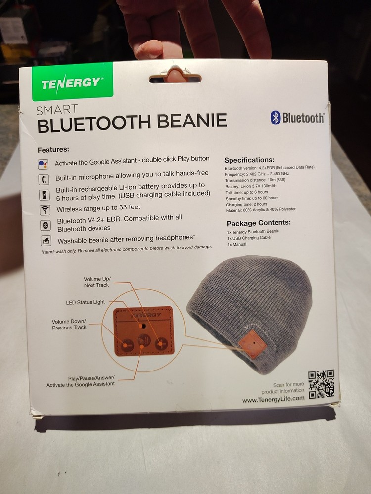 New Tenergy Bluetooth Beanie Wireless Smart Headset Headphone Gray Winter Hat