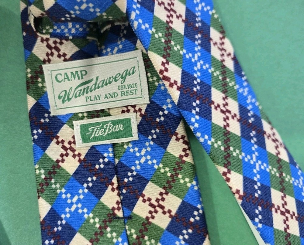 Type:TieFeatures:camp wandawega, camp wandawega tie bar, tie bar, made in USA, camp wandawega dive bar, camp wandawega dive bar tie barFabric Type:WovenCountry/Region of Manufacture:United StatesHandmade:YesMaterial:WoolNumber of Pieces:1 pieceColor:BlueItem Length:Classic (57"-60")Style:DesignerSize:One SizeDepartment:MenPattern:Plaids & ChecksTheme:Preppy, plaid tie, camp wandawega, camp wandawega tie bar, camp wandawegadive bar tie bar, new tie barCharacter:camp wandawegaAccents:argyle tieBrand:The Tie BarVintage:No