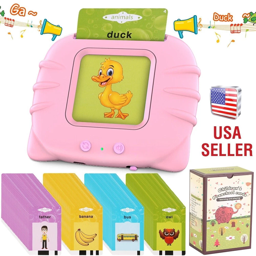 You may also like 8 in 1 USB-C Hub Type C To USB 3.0 4K HDMI PD Adapter For iPhone Macbook Pro/Air 13.99 USD Free shipping Bluetooth Earbuds Headset TWS5.3 Inear Wireless Earphone Invisible for All Phone 16.99 USD Free shipping Support 128GB Bluetooth MP4/MP3 Lossless Music Player FM Radio Recorder Sport 22.97 USD Free shipping Lot 100 Multi Colors Cross Stitch Floss Cotton Thread Embroidery Sewing Skeins 14.99 USD Free shipping 6Pcs Ultrasonic Pest Repeller Control Electronic Repellent Mice Bug Rat Reject 12.99 USD Free shipping 2Pcs Golf Swing Training Grip Standard Teaching Aid Warm Up Trainer non-slip 11.99 USD Free shipping Overview: Audible interactive sight words flash cards allow children to learn the basic words and periodically retain them and learn the word just like play word game. The colorful and vivid pictures grab preschool kids’ attention, through the pattern, words and parent-child interaction in the form of combining, in the process of watching and playing to promote the baby observation, voice, thinking, games, cognitive words. These cards are a good visual learning tool, designed to enhance and encourage active recollection of information. In addition, it will tell you what is on the card and what sound the animal/vehicle makes, no harmful to kids’ eyesight. Optimal gift for children aged 1-5 years old. Features: *Early Development Learning Toy: Our flash card learning kit consists of 12 categories in 112 double sided flashcards(224 words). It's suitable for 1 2 3 4 5 years old boys and girls. Enhance cognitive ability, exercise hearing and build vocabulary for kids. This aids in effectively improving kids' memory and concentration. *Loud & Standard Pronunciation: Featured with volume adjustment button,standard pronunciation,vivid color printed pattern,it is great for toddlers who are trying to learn basic words and toddler who is speech delayed. Perfect as educational learning toys,preschool toys,kindergarten toys,speech therapy toys,autism toys,travel toys both boys and girls. *Easy To Operate: It's easy to insert and remove cards even for a toddler,put the cards into the reader,it will tells you what is on the card and what sound the animal/vehicle makes. No LCD display and no WiFi restriction,it will get kids away from electric devices and the TV,protect eyesight and help them learn new words with repeat function,sounds,identify pictures so as to expand their imagination. *Portable & Rechargeable: Perfect size for toddler hands and easy to carry it around. Built-in a rechargeable battery and equipped with a micro USB cable. 3Hours charging time provide 5 hours playing time. And it will automatic shutdown after 3 minutes of no use. *Optimal Gift: The early education machine fully mobilizes kid’s vision,hearing and touch,leads them to cultivates the ability of independent thinking and learning. Turn playtime into learning time. Great gift for birthday,Christmas and other holidays for girls and boys ages 1-5 years old. Friendly Reminder: 1.As for some animals and vehicles are hard to recognize the sound they emit,thus the reading machine may not imitate what sound they makes. Specifications: Product Type: Talking Flash Cards Color Available: Pink, Blue Materials: ABS Battery: 1Pc 300mah 10300 Lithium Battery (Included) Fully Charged Time: 3Hrs Runtime: 5Hrs Auto Off When No Operation: 3Min Volume Adjustment: 7 Levels Age Applicable: 1-5Years Old Card Quantity: 112Pcs Double Sided Flashcards; 224 Words Category/Word Quantity of Flashcards: Person(8 Words); Jobs(9 Words); Costumes (15Words); Color(9 Words); Shape (5 Words);Nature(10 Words); Fruits(18 Words); Foods(21 Words); Vegetables(17 Words); Vehicle(25 Words); Daily Necessities(31 Words); Animal (56Words) Per Card Size: 6x9cm/2.36x3.54in Per Card Weight: 1g/0.03OZ Charging Cable Length: 30cm/11.81in Item Size: 10.7x9x2.1cm/4.21x3.54x0.83in Item Weight: 64g/0.14lbs Package Size: 18x9.7x4.7cm/7.09x3.82x1.85in Package Weight: 268g/0.6lbs Package Contents: 1x Reading Machine 112x Flash Cards 1x Micro USB Charging Cable 1x User Manual You may also like Bluetooth Earbuds Headset TWS5.3 Inear Wireless Earphone Invisible for All Phone 16.99 USD Free shipping Lot 100 Multi Colors Cross Stitch Floss Cotton Thread Embroidery Sewing Skeins 14.99 USD Free shipping 8 in 1 USB-C Hub Type C To USB 3.0 4K HDMI PD Adapter For iPhone Macbook Pro/Air 13.99 USD Free shipping Support 128GB Bluetooth MP4/MP3 Lossless Music Player FM Radio Recorder Sport 22.97 USD Free shipping 120W Cordless Handheld Vacuum Cleaner Small Mini Portable Car Auto Home Wireless 12.97 USD Free shipping 7.8" LED Projection Alarm Clock Digital Clock with 180° Projector Snooze Bedside 16.49 USD Free shipping