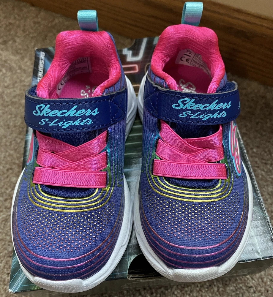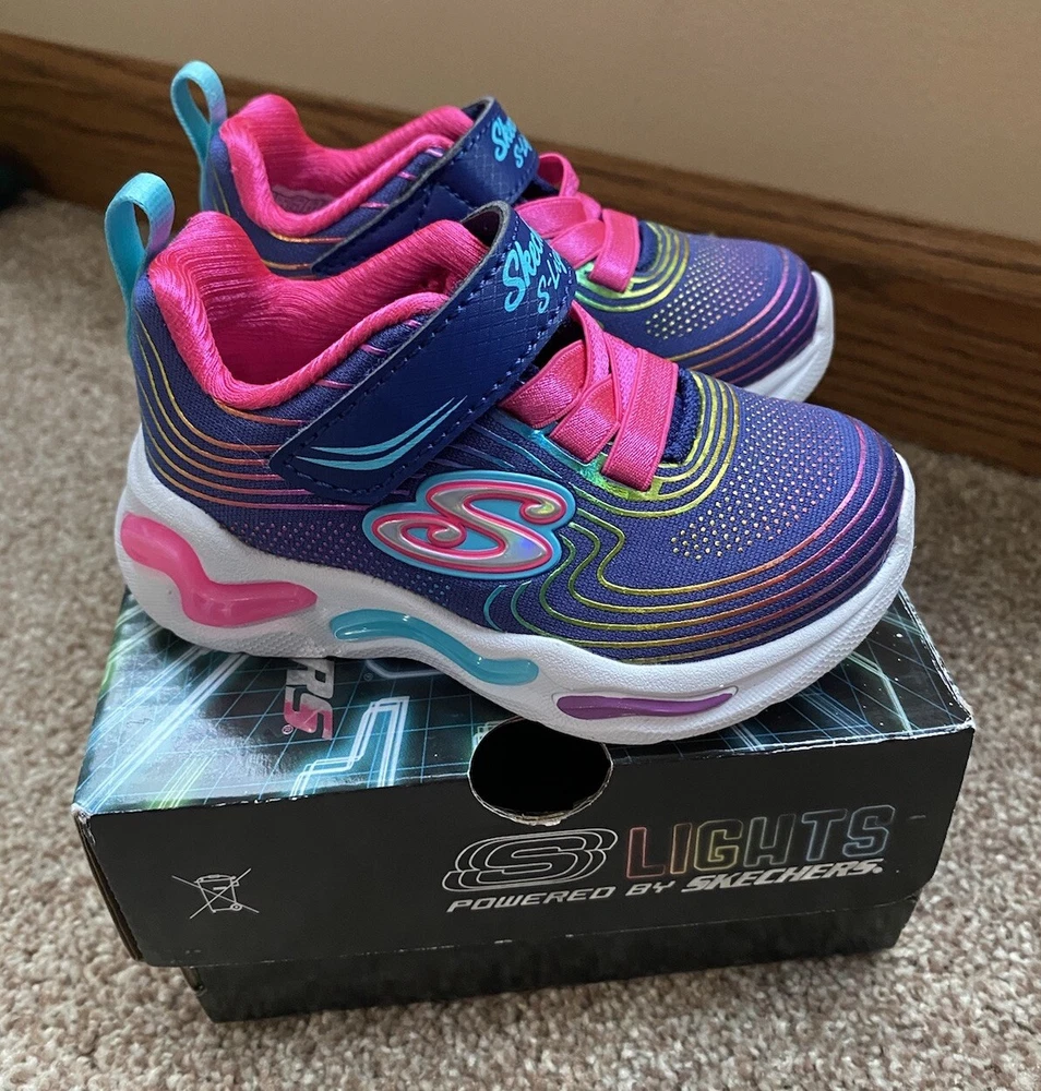 New Toddler/Baby GIRLS SKECHERS SIZE 5 SHOES LIGHT UP WAVY BEAMS. Condition is New with box. Shipped with USPS Ground Advantage.