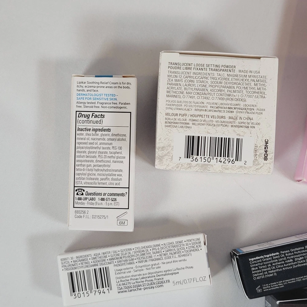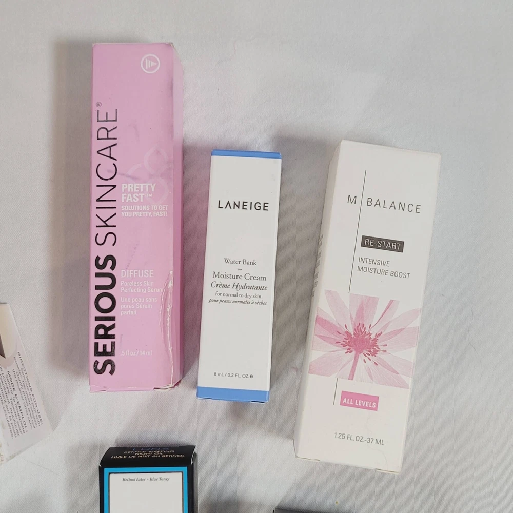 LOT of 8 Travel-Sized Serums, Creams, and More. All brand new in boxes. A couple boxes have minor shelf wear, see pictures, but none have been opened/used. Includes a total of 8 products, retail for these is $10-$30 each, so this is a great chance to save money and try out various products! Lot includes: Laura Mercier: Ready, Set Go! Translucent Loose Setting Powder, 0.33 oz Serious Skincare: Pretty Fast, Diffuse, Poreless Skin Perfecting Serum, 14 ml / 0.5 fl. oz Laneighe Water Bank Moisture Cream, for normal to dry skin, 8 ml / 0.2 fl. oz. M Balance: Re-Start Intensive Moisture Boost, All Levels, 37 ml / 1.25 fl. oz. La Roche-Posay: Lipikar Eczema Soothing Relief Cream, 5 ml / 0.17 fl. oz. La Roche-Posay: Retinol B3 Serum, Anti-Wrinkle Concentrate, Renewing/Resurfacing, 5 ml Sunday Riley / Luna: Retinol Sleeping Night Oil, 7.5 ml / 0.25 fl. oz Primera: Alpine Berry Water Cream, Hydrate + Glow, 5 ml / 0.16 fl. oz Please see all pictures for exact cosmetic condition and other details, as they are part of the description as well, and ask any questions before purchasing. We are a husband and wife team with a growing family, and greatly appreciate your support of our small business. Please browse our eBay store for a variety of other health and beauty products. We hope you enjoy this set!