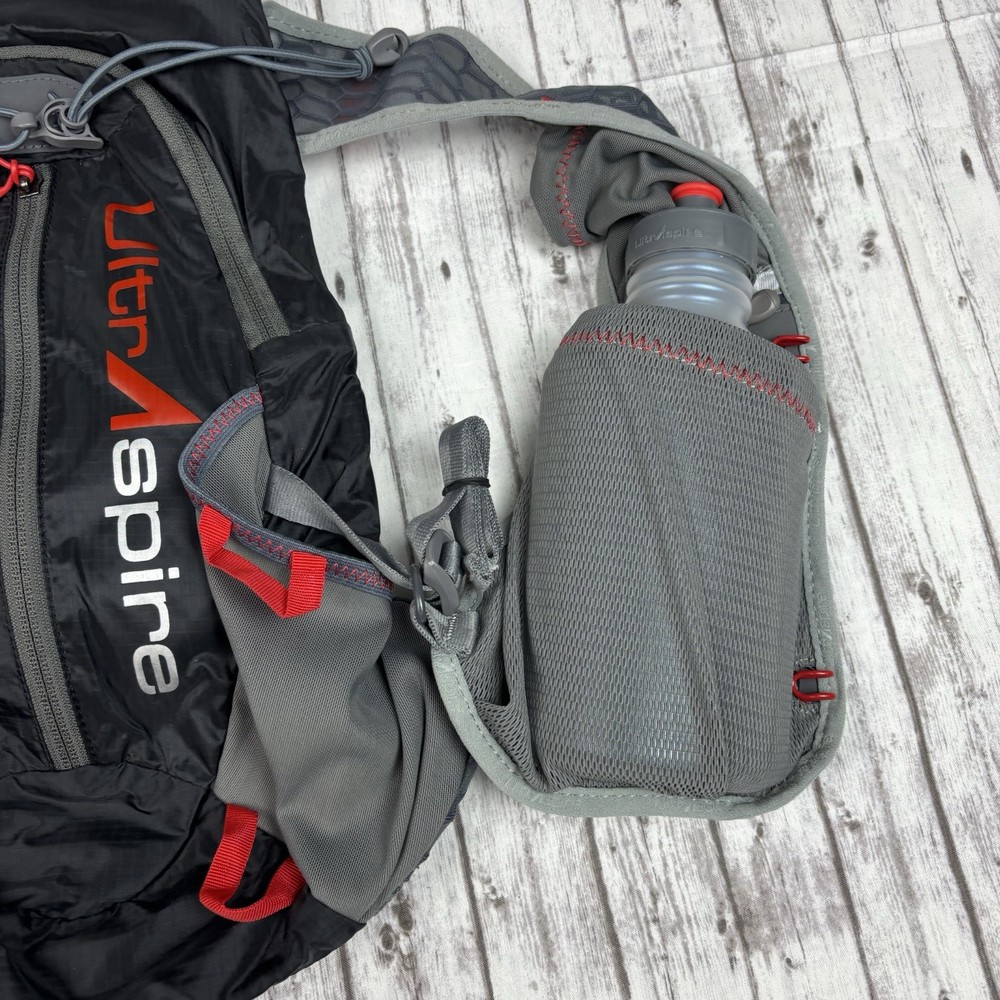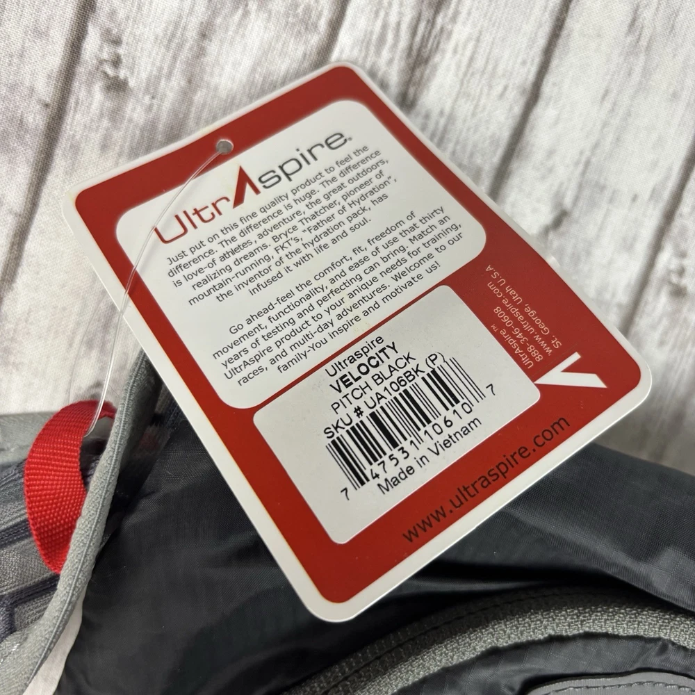 The Ultraspire Velocity Lightweight Hydration Pack is a sleek and functional option for outdoor enthusiasts. This pack features a black color with gray accents, making it stylish for both hiking and running. The Ultraspire brand is known for producing high-quality hydration systems, ensuring that you stay hydrated on the go. The one-size-fits-all design makes it versatile for a wide range of users, while the pack's lightweight construction makes it comfortable to carry during long outdoor adventures.