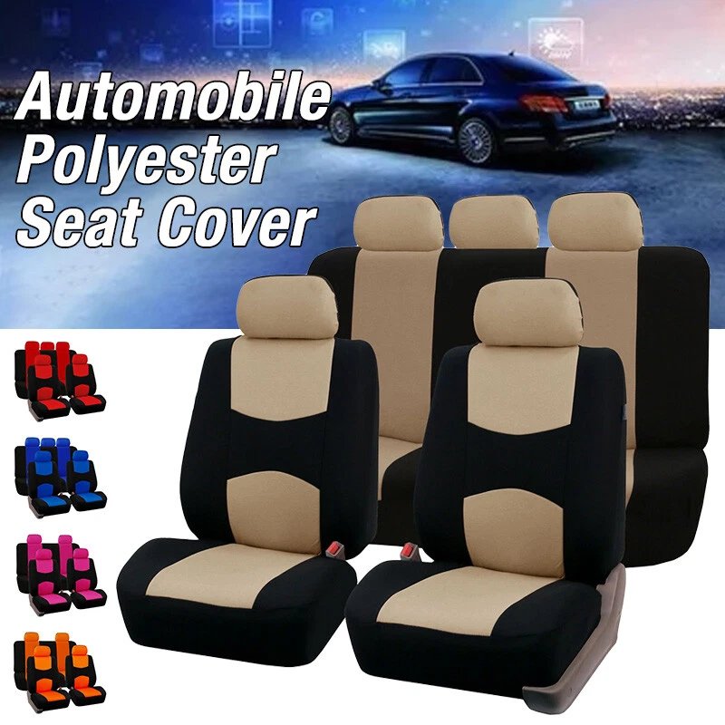 Product Description: Item Type: Interior Accessories & Seat Covers Item Name: Universal Car Seat Covers Compatible Vehicles : Cover Fits all Standard Car Seats Placement on Vehicle: Front and Rear Material :Polyester Color: Red/Blue/Beige/Gray/Black/Rose Red /Yellow/Orange/Green Suite Number: 9 Pieces Set Zipped Contains: 5 seat covers: 28 * 26cm /11.02*10.24 inches(Approx.) 2 seats front seat: 118 * 56cm/46.45*22.05 inches(Approx.) 1 triple backrest: 135 * 76cm/53.15*29.92 inches(Approx.) 1 triple seat: 135 * 55cm/53.15*21.65 inches(Approx.) Package included:1 x 9 Pieces Set Note: 1.Transition: 1cm=10mm=0.39inch 2.Please allow 1-2cm error due to manual measurement. pls make sure you do not mind before you bid. 3.Due to the difference between different monitors, the picture may not reflect the actual color of the item. Thank you!
