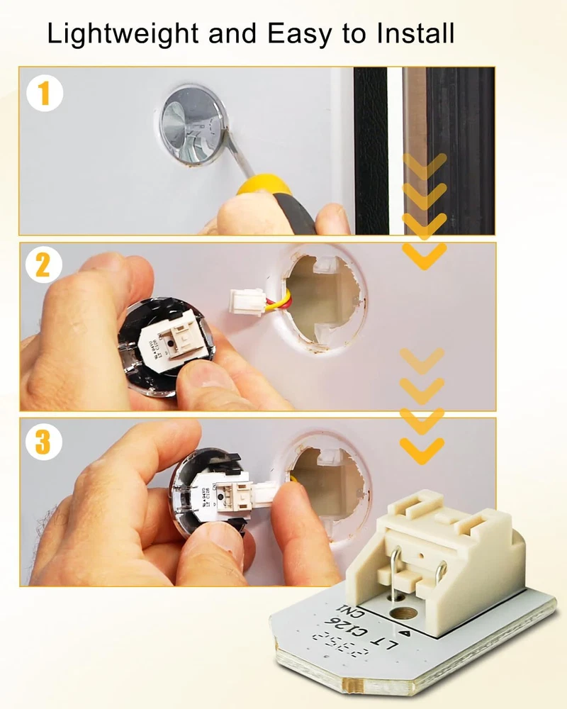 Fitment Fit for GE Refrigerator GFE26GGKEBB GFE26GGKEWW GFE26GGKFBB GFE26GGKFWW GFE26GMKCES GFE26GMKDES GFE26GMKEES GFE26GMKFES GNE29GGKCWW GNE29GGKDBB GNE29GGKDWW GNE29GGKEBB GNE29GGKEWW GNE29GGKFBB GNE29GGK FWW GNE29GMKCES GNE29GMKDES GNE29GMKEES GNE29GSKCSS GNE29GSKDSS GNE29GSKESS GNE29GSKFSS GFE26GSKGSS Fit for GE Refrigerator DFE28JSKGSS GFE26GGKGWW GFE28HSKFSS GFE28GMKGES GFE28GSKHSS GFE26GSKHSS GFE26GMKGES GFD28GSLCSS DFE28JBLCTS DFE28JBLDTS DFE28JELCDS DFE28JELDDS DFE28JMKGES DFE28JMKHES DFE28JSKHS S GFD28GBLCTS GFD28GBLDTS GFD28GELCDS GFD28GELDDS GFD28GMLCES GFD28GMLDES GFD28GSLDSS Product Specifications Product Color: White Material: Plastic Compatible Model: Replace Wr55x11132 Wr55x25754 Package Includes: 6 × Refrigerators LED Lights Compatible with Refrigerator Models: Fit for GE Refrigerator GFE26GGKEBB GFE26GGKEWW GFE26GGKFBB GFE26GGKFWW GFE26GMKCES GFE26GMKDES GFE26GMKEES GFE26GMKFES GNE29GGKCWW GNE29GGKDBB GNE29GGKDWW GNE29GGKEBB GNE29GGKEWW GNE29GGKFBB GNE29GGK FWW GNE29GMKCES GNE29GMKDES GNE29GMKEES GNE29GSKCSS GNE29GSKDSS GNE29GSKESS GNE29GSKFSS GFE26GSKGSS, please refer to the details page for specific models Safe and Reliable: The LED light panel adopts low-voltage DC power supply, which is not easy to generate heat and is safer and more reliable to use, helping to maintain stable temperature inside the refrigerator and ensuring food safety Space Saving: LED light panels are usually smaller and more compact than traditional light bulbs, which can save space inside the refrigerator and make the available space larger Bright and Comfortable: LED light panels provide clear and bright lighting effects, effectively illuminating the entire interior space of the refrigerator, making it easier for you to find the items you need and providing a comfortable visual experience Direct Installation: In case of power outage, use a screwdriver to remove the lampshade and directly replace the old LED light. The lamp panel has a long service life, which not only improves efficiency but also saves maintenance costs