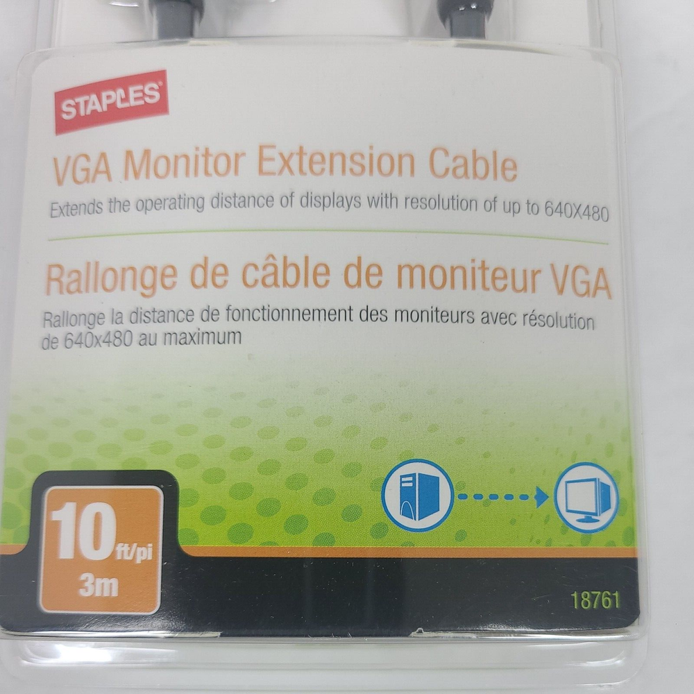 STAPLES New VGA Monitor Extension Cable #18761 10 Ft. NEW In Package Ships FAST with USPS First Class Thank You For Visiting Our eBay Store--Check Out Our Other Great Items!