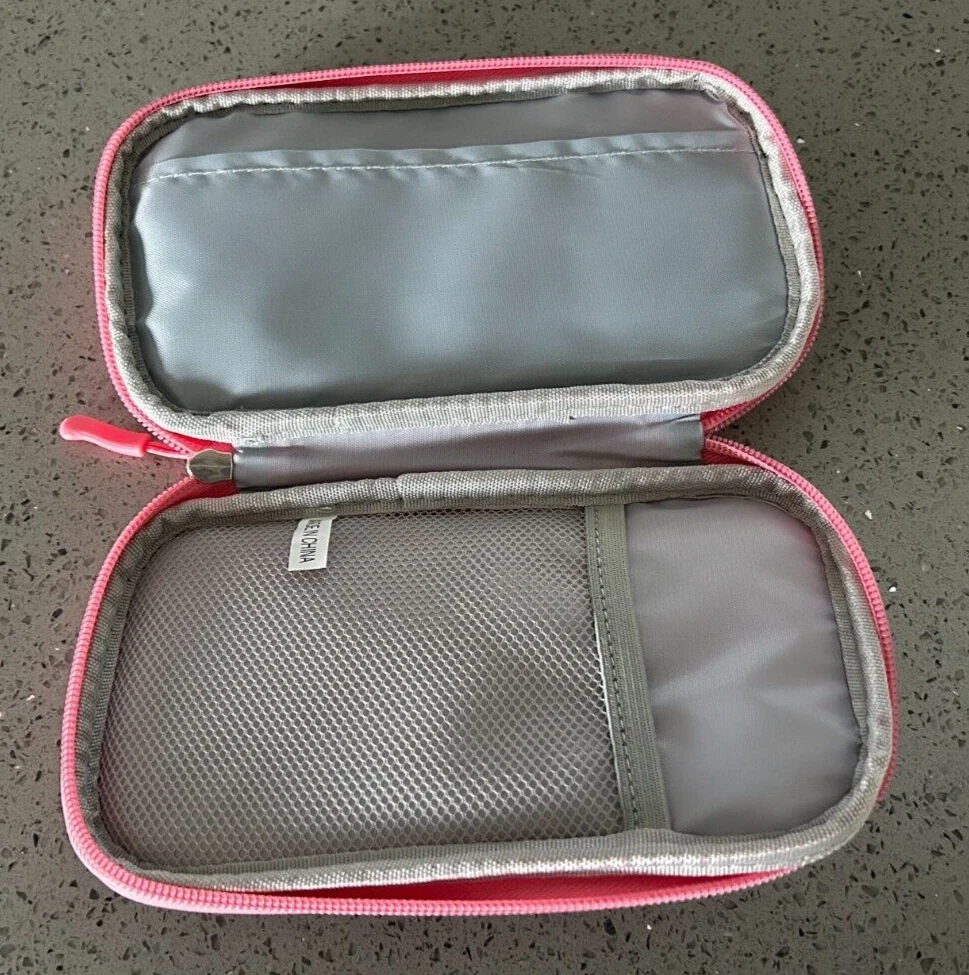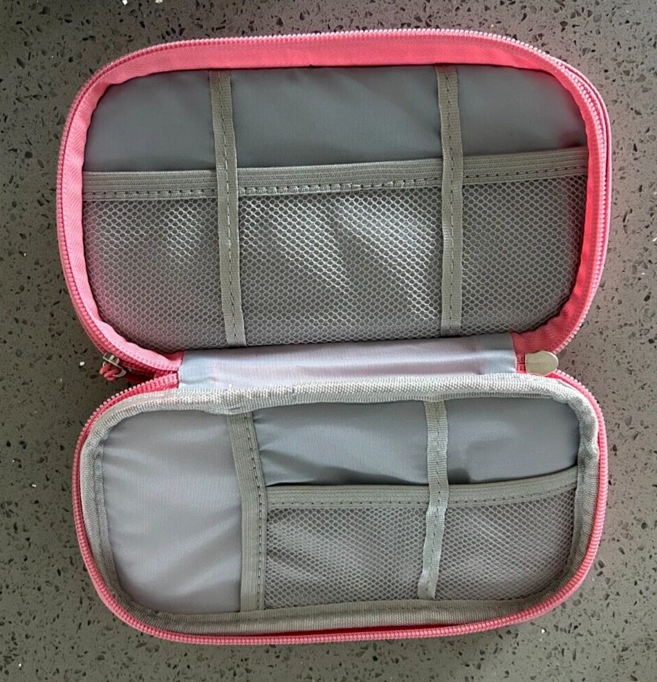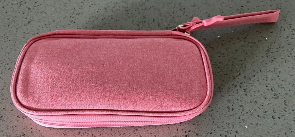 New - Pink organizer travel case pouch, portable, soft case. Great for ear phones, flash drives, cables, power banks, electronics, or kids items, medication, etc. All in one place. 7.5in x 4in x 1.5in.