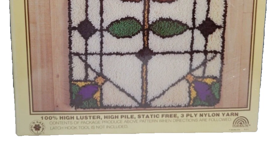 New / Vintage Style #57 Rainbow Latch Hook Kit "FLOWER STAINED GLASS" Finished Size 20" x 27" Pic N Latch Please view photos for more details