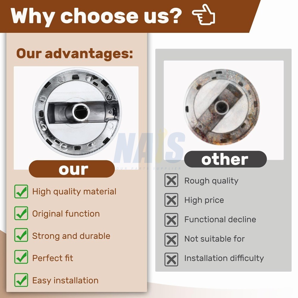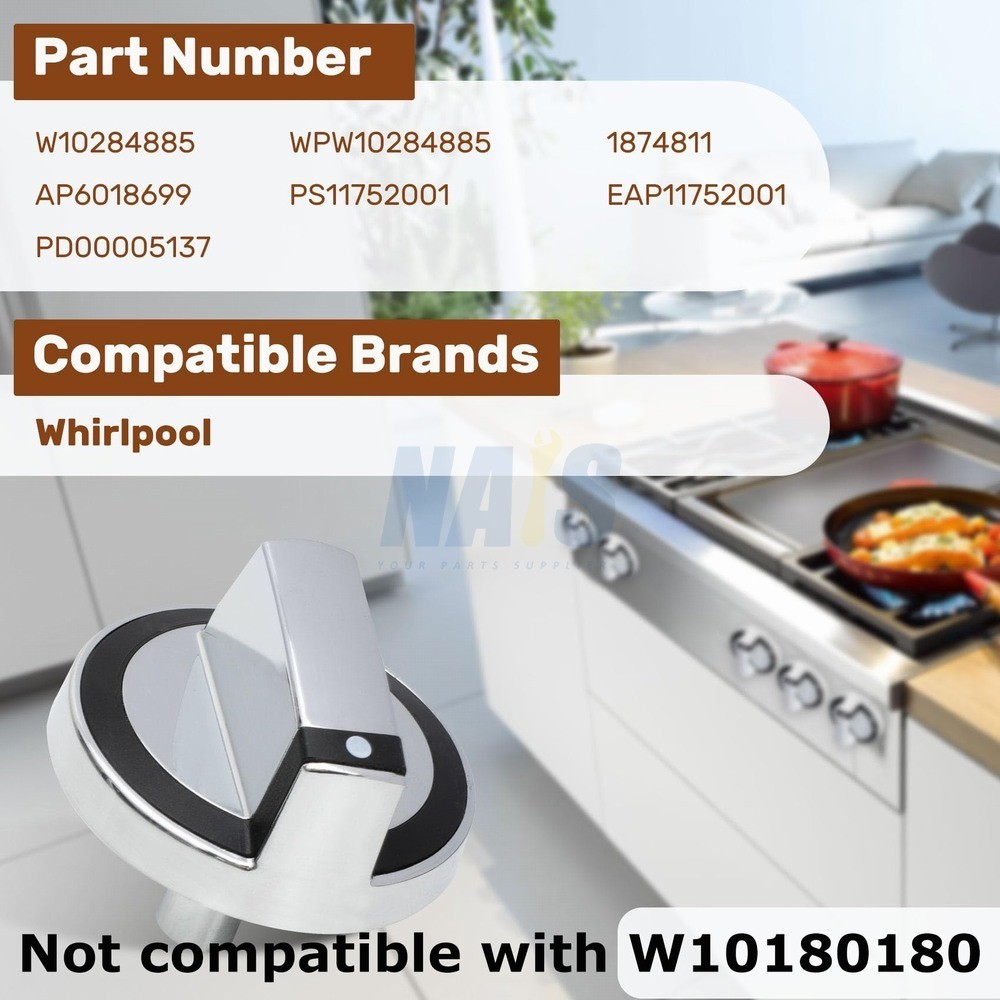 【Please note】 The stem length of the W10284885 is approximately 1 in. The W10284885 looks similar to the W10316664 and the W10415450, but their stem lengths are not the same, check the valve length of the knob you are purchasing before purchasing. 【Compatible Models】 Fits the following models: G7CG3064XS00, G7CG3064XB00, G7CG3665XS00, G7CG3665XB00, replacements part WPW10284885, W10284885, PS11752001, AP6018699, Note: Not applicable to W10316664 and W10415450. 【Higher quality】 W10284885 Knobs are made of high quality durable materials for ruggedness and long life. 【Easy to install】 No tools are needed, just remove the old knob and push in the new one. 【Peace of mind after sales】 If you have any questions about W10284885 Replacement Knob, please feel free to contact us, we will reply you within 24 hours and do our best to solve the problem for you. On Dec 1, 2025 at 11:01:34 PST, seller added the following information: