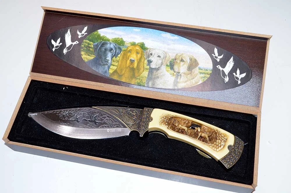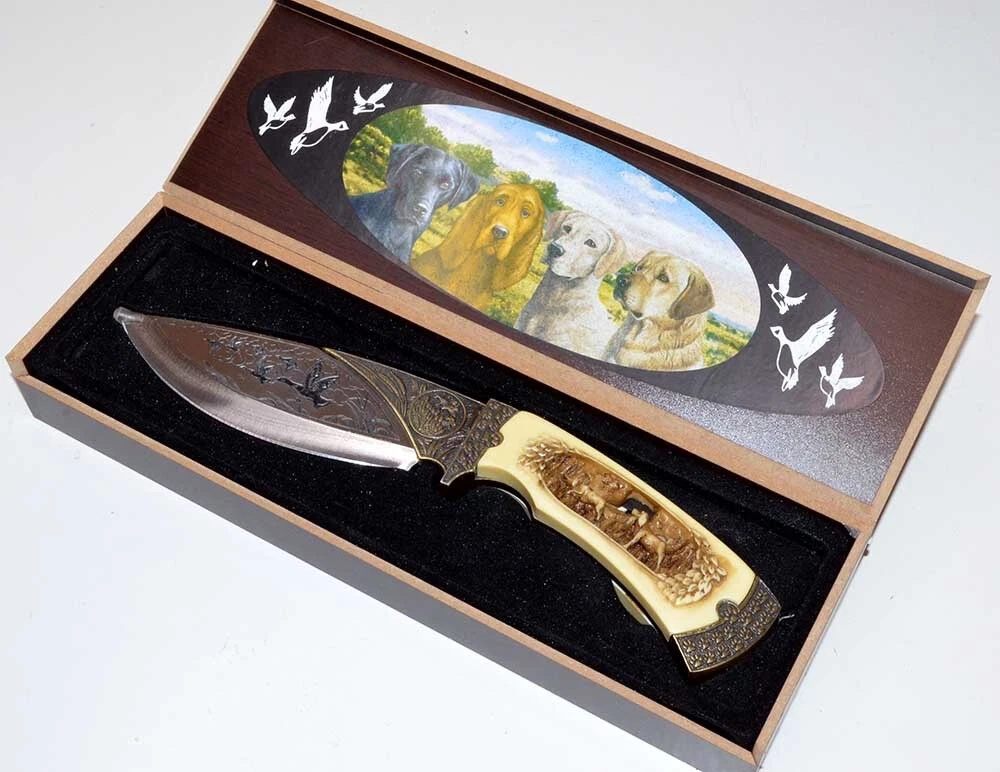New WMG 2006 Hunting Knife - Pointer Dog Handle & Canadian Geese Engraved Blade This is a New WMG 2006 Hunting Knife - Pointer Dog Handle & Canadian Geese Engraved Blade . New with wood box (as pictured). 9.5" Long with 5.5" Blade. Includes Wooden Box. Terms For This Auction Payment is expected through Ebay Payments within 48 hours of end of auction. You can pay using your credit card, electronic check or a direct transfer from your account. Before bidding, please review all components (photos, text, terms, etc.) of this auction and bid carefully and ask any questions before bidding. All items are described to the best of our knowledge, if any item is not as described, please contact us immediately. we are happy to resolve an issue of any misrepresented item. This item is being sold as is, and thus, no returns unless the item is not as described or is misrepresented. If this is the case we will offer a full refund upon receipt of the returned item. International Buyers – Please Note: Happy to quote postage via email if the shipping detail and costs do not appear in the auction. Import duties, taxes, and charges are not included in the item price or shipping cost. These charges are the buyer's responsibility. Please check with your country's customs office to determine what these additional costs will be prior to bidding or buying. Please be patient!!!...International delivery sometimes takes up to 4 weeks due to your country's customs policies and regulations.