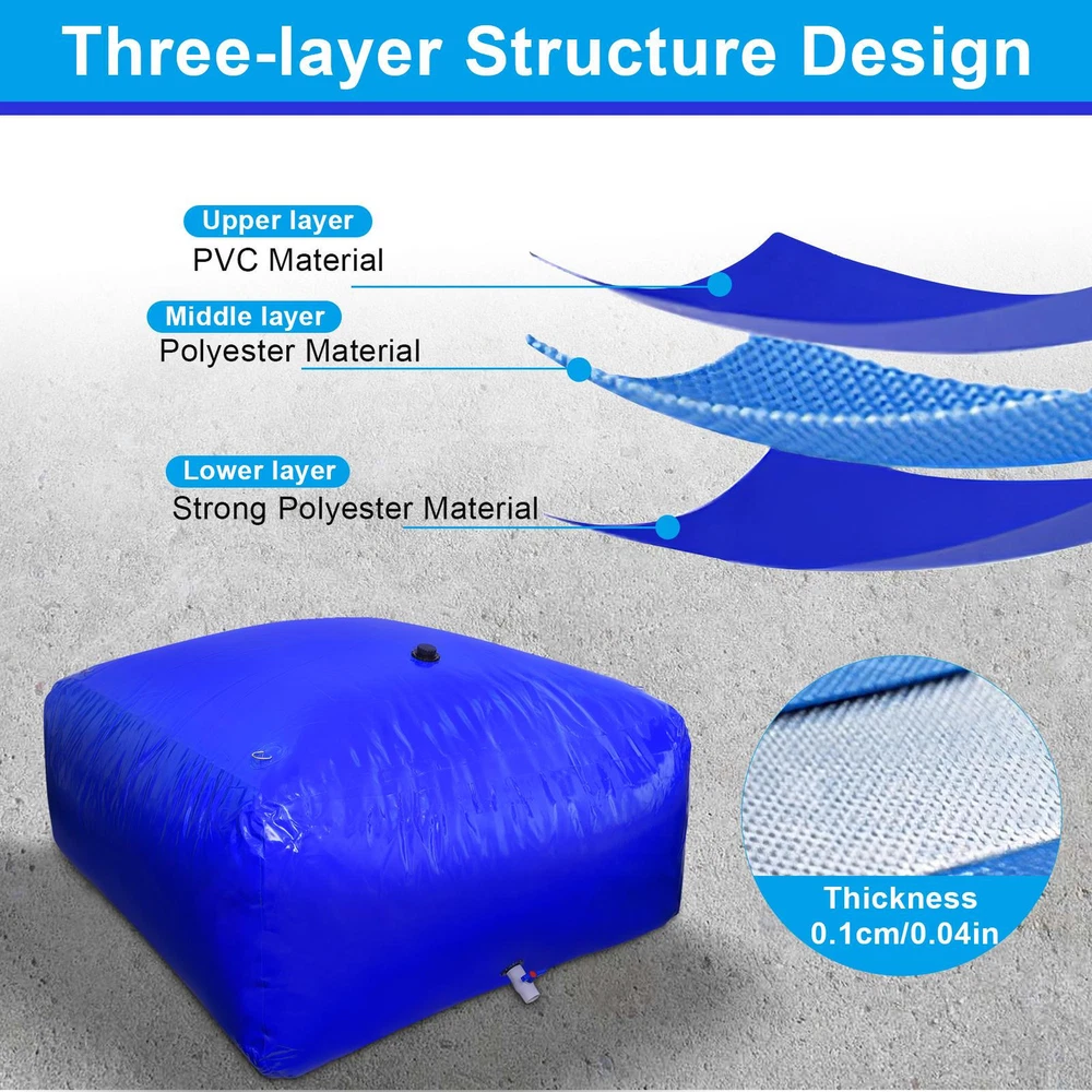 New Water Tank Bladder Portable Rainwater Bag 792/1056 Gal PVC Collapsible Blue