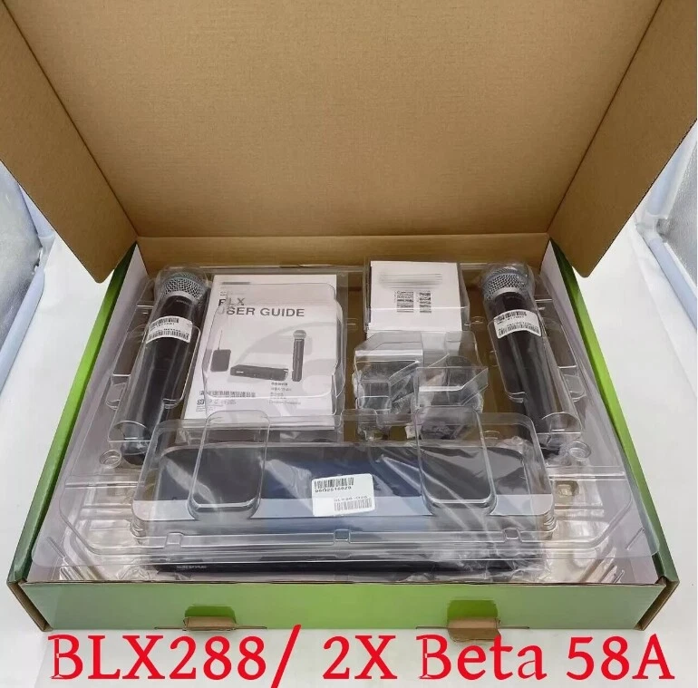 Wireless Vocal System SHUR BLX288 / Beta 58A w/2 BETA58 Microphones Express US Description: For performers who wish to unplug from the wire, BLX Wireless Systems are the clearest choice. delivers wireless confidence with legendary sound from industry-renown microphones, decades of wireless design proficiency and world-class construction.(including vocal, guitar, headset and presenter system), BLX Wireless Systems are ready to perform right out of the box. The BLX Wireless Vocal Combo System from S hure joins world-class design and construction with simple and easy setup and operation, featuring dual wireless channels, QuickScan frequency selection and Beta 58A professional-quality vocal microphone capsules for lead and backup vocal performance applications. Legendary sound and performance, right out of the box. New open box (only opened for inspection, not used) Package Included: BLX288 dual wireless receiver 2 BETA 58A handheld transmitters with integrated BETA 58A supercardioid dynamic microphone caps 2 microphone clip 4 AA batteries BLX User Guide (as shown in the figure) Return policy ● If you are dissatisfied in any way or need to return the product, please contact our customer service representative and let us know the details. We will definitely give you a satisfactory reply. ● Please choose from the following five reasons. The reason you choose has no impact on you or your refund amount, but it has a great impact on us as a seller. Choosing other reasons may trigger an internal investigation or an appeal to eBay, which will lead to a delay in your refund. 1) Just didn't like it 2) Doesn’t fit 3) Changed my mind 4) Ordered by mistake 5) Found a better Price On Dec 8, 2024 at 21:05:19 PST, seller added the following information: