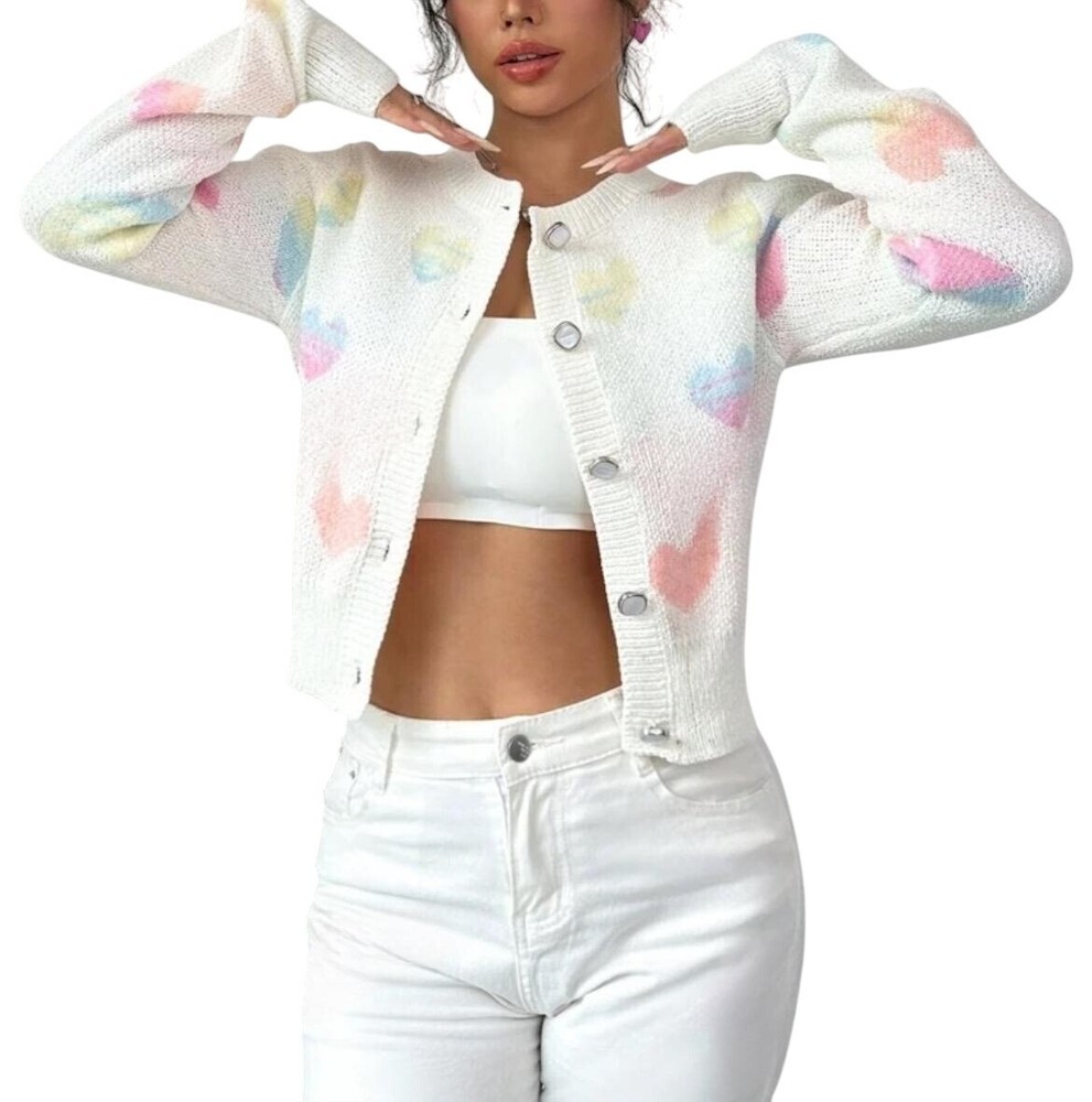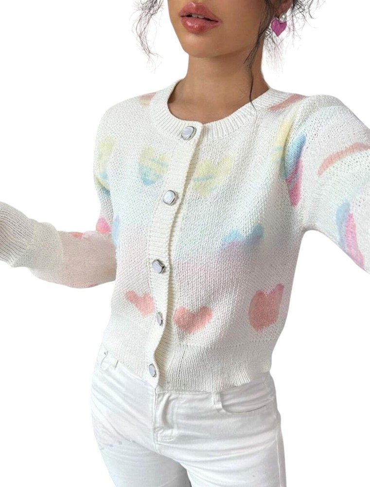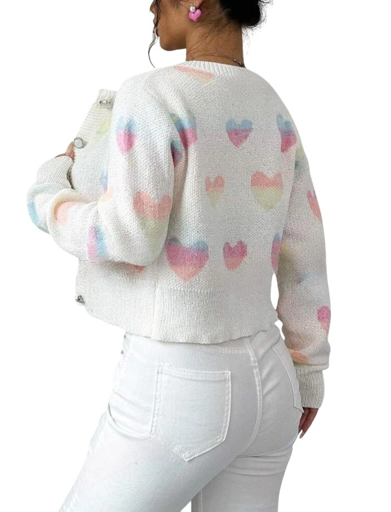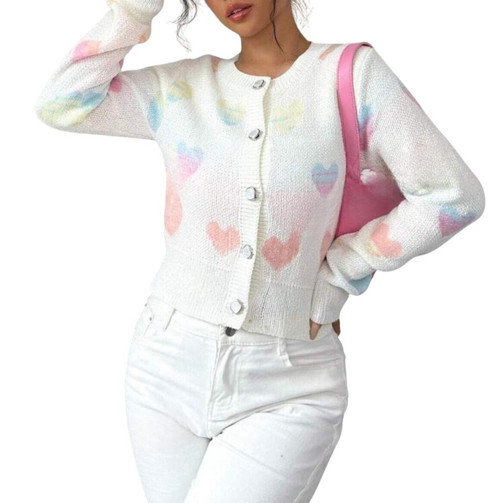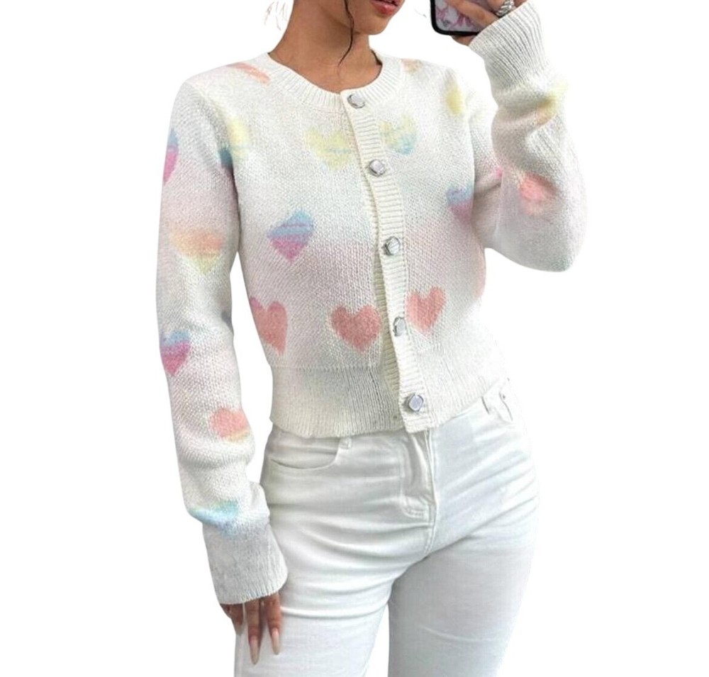 Beautiful Heart Print Knit Slim Cardigan Add a romantic touch to your wardrobe with this Beautiful Heart Print Knit Slim Cardigan. Perfectly designed for style and comfort, this cardigan is a must-have for any fashion enthusiast. • Beautiful heart print design • Knitted for maximum comfort • Slim fit for a flattering look • Versatile - can be paired with various outfits • Durable and long-lasting