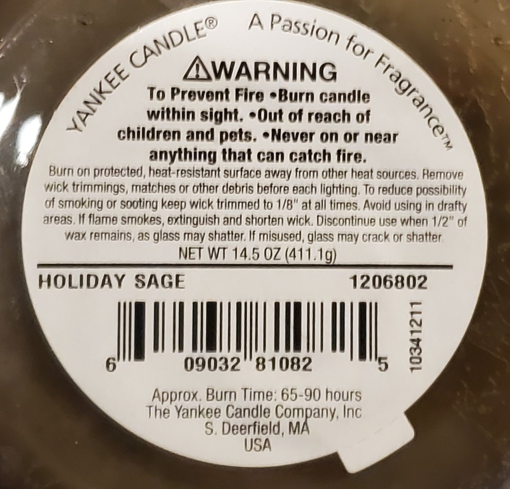 gtin13: 609032810825 Scent: HOLIDAY SAGE Type: Jar/Container Candle UPC: 609032810825 Color: Green Features: Scented, Large Jar, 22 oz, Up to 150hrs Burn Time, Returning Favorite, HOLIDAY SAGE Brand: Yankee Candle Theme: HOLIDAY SAGE Shape: Jars