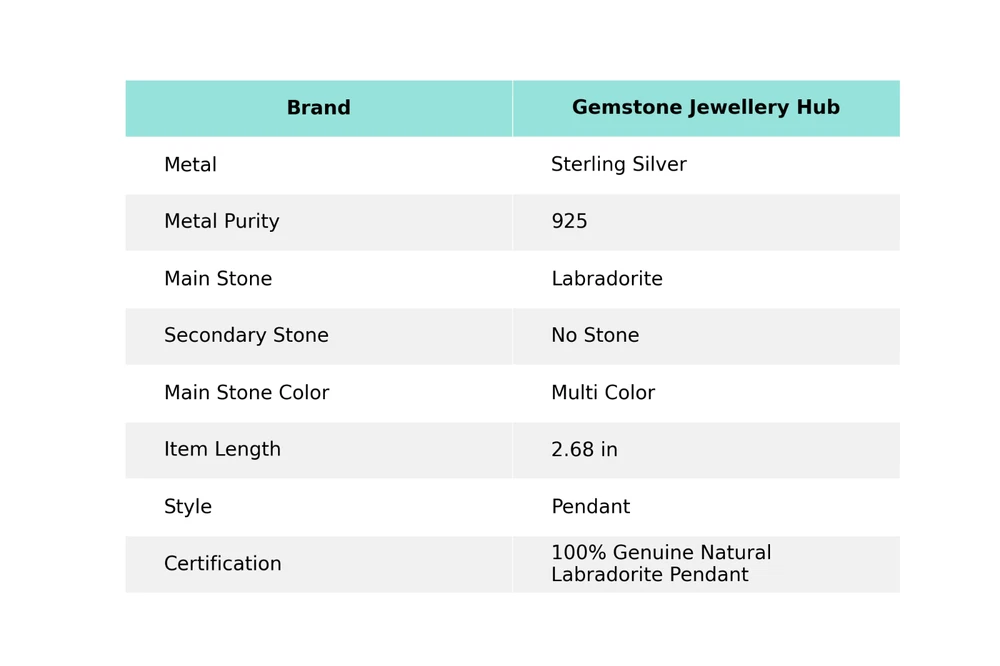 Welcome to Gemstone Treasure Hub Anniversary Gift For Her Labradorite Gemstone Pendant 925 Sterling Silver Handmade Pendant, Sterling Silver Pendant, labradorite Pendant, Handcrafted Pendant SKU : MP-3072 Gemstone : labradorite Stone Shape : As Seen In Picture Metal Purity : 925 Sterling Silver Length : 2.68 Inches Width : Inches ___________________________________________________________________ Shipping Handling - Charge - Free ( Condition apply ) Handling Time - One business day . Delivery Time - 3 to 23 Days ( Various on destination ) Postage service - (A.) India Post - Below $100 order which takes 11 to 23 days . (B.) USPS, Fedex, DHL , Aramax- Order above $100 which takes 3 to 7 days . _________________________________________________________________ Returns - 1. We provide a 100% Money Back Guarantee, excluding shipping costs, within 30 days from the date of item receipt. 2. The item must not be altered or damaged in any way shape or form. 3. Upon receiving these items your payment will be refunded. 4. Kindly reach out to us via email to obtain return instructions prior to initiating the return of merchandise. 5. Please allow up to 1 business day for all returns to receivecredit. 6. Sizing does not affect the return policy. _________________________________________________________________ Payment - We accept PayPal for Payment , should made within three days once buying or winning done , in case of late information expected . _________________________________________________________________ FAQ's - Q.(A) ARE THE ITEMS YOU ARE SELLING BRAND NEW? We exclusively offer brand-new products, refraining from the sale of pre-owned jewelry. Our entire jewelry collection is composed of 100% natural, conflict-free pieces. We do not engage in the trade of imitation or lab-grown gemstones and diamonds. Q.(B) WHAT ARE YOUR BUSINESS HOURS? Our business hours are Monday to Friday, 10:00AM to 6:00PM, excluding holidays. ________________________________________________________________ Gemstone Treasure Hub is dedicated to providing customers with exceptional handmade jewelry crafted to the highest standards of quality. We operate as both connoisseurs and manufacturers of artisanal jewelry, possessing a profound expertise in the art of elevating gemstones to perfectly align with any aesthetic preference. We are pleased to offer you the opportunity to create your own jewelry collection, adorned with authentic and exquisite natural gemstones. Our team of highly skilled artisans painstakingly crafts each individual jewelry piece, ensuring the creation of products with a unique identity that feature genuine gemstones. The jewelry articles presented on our website accurately depict the precise pieces that you will receive.