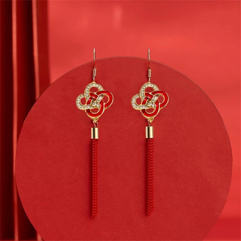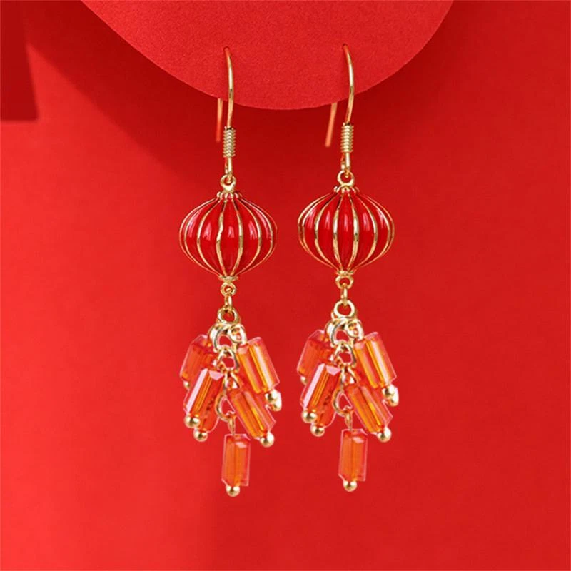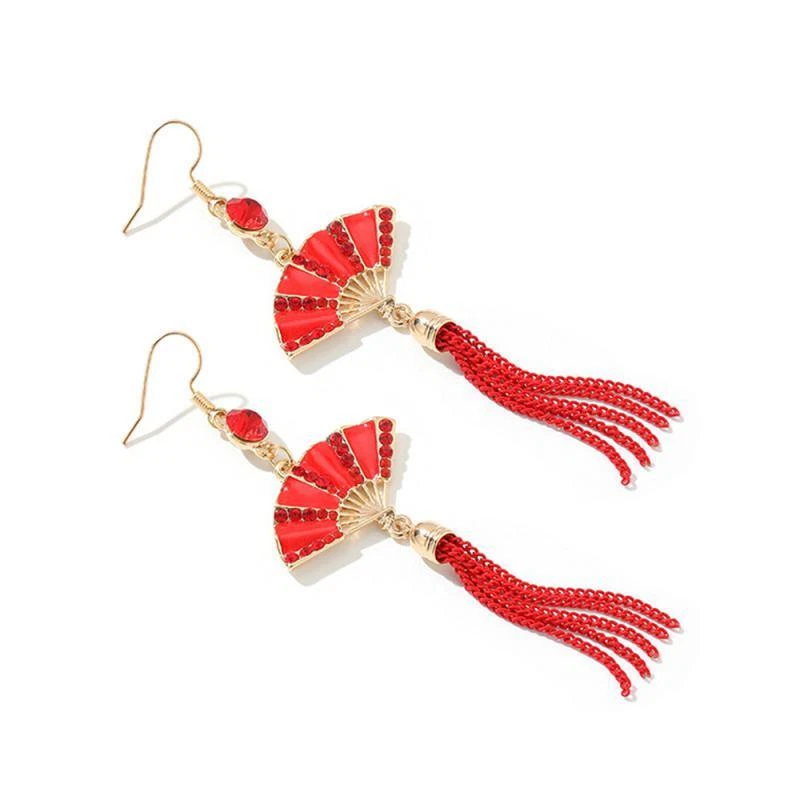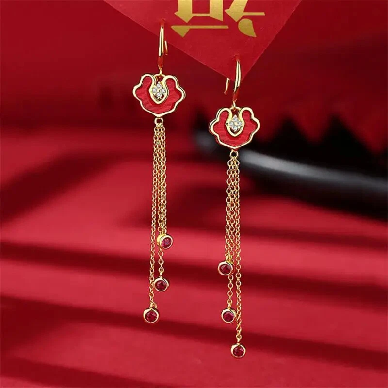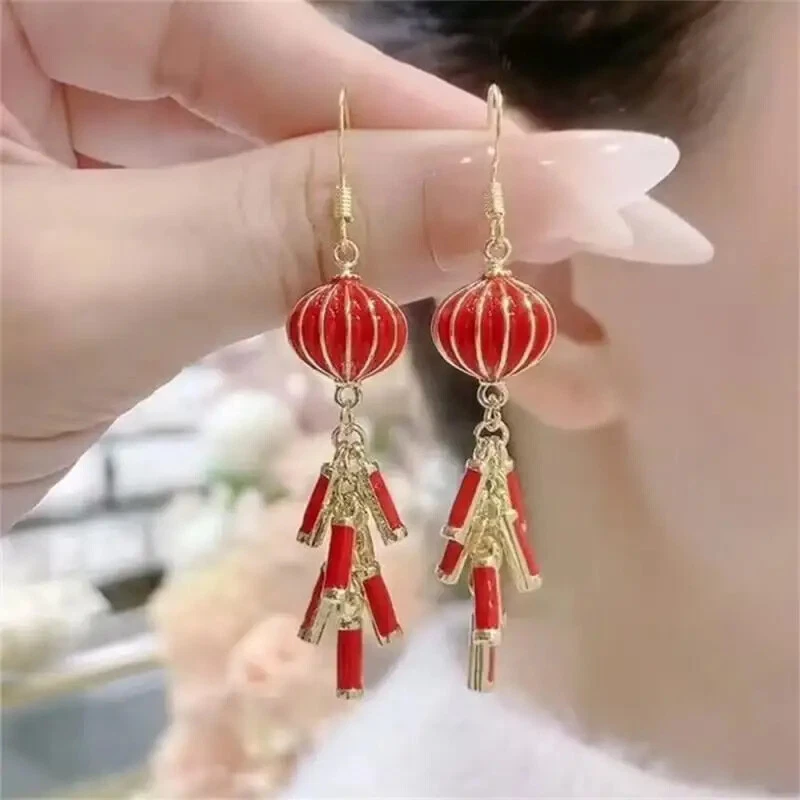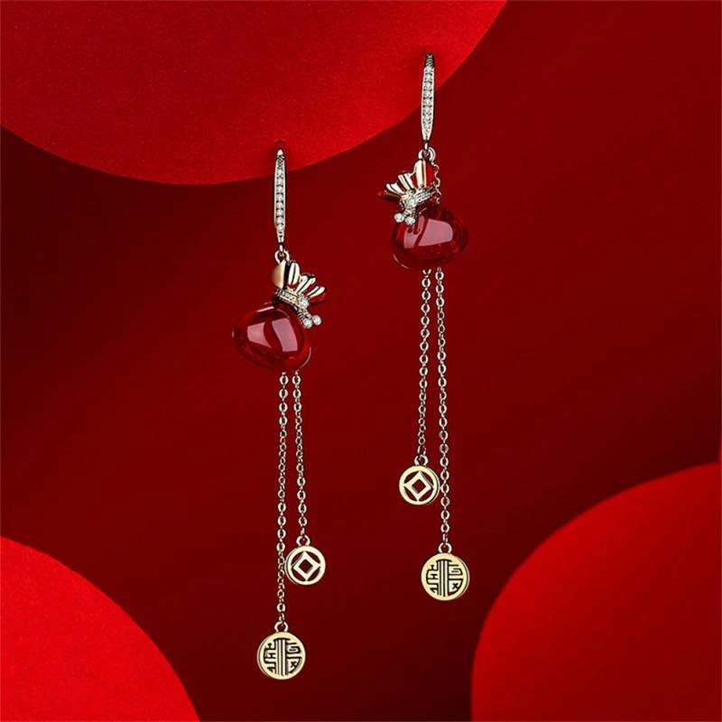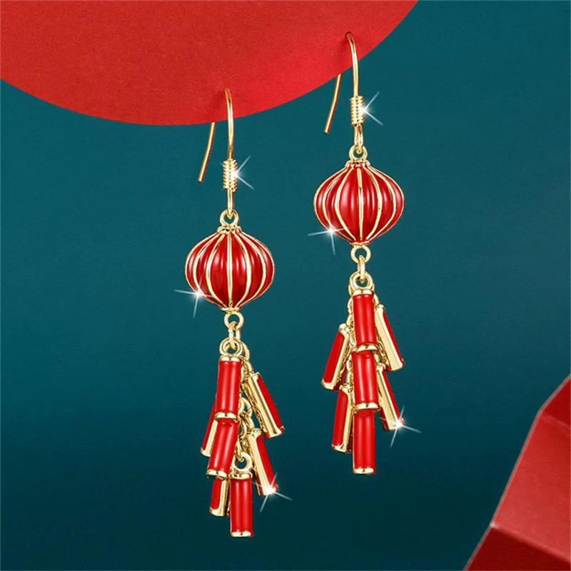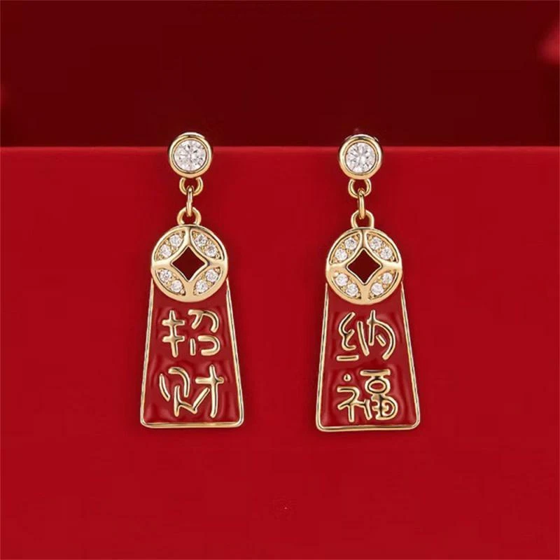 New Year Red Earrings For Women Chinese Style Festive Good Luck Metal Tassel Pendant Charm Ear Hook Party Creative Jewelry Gifts Description: Name: Earrings Material: Alloy Treatment Process: Dripping Oil Place Of Origin: Yiwu Style:personality Features: 1. Fashionable And Trendy Accessories, Full Of Atmosphere 2. Made Of High-quality Materials, Durable And Not Easy To Fade. 3. Simple And Versatile, Fashionable And Beautiful, With Strong Sense Of Decoration 4. High-profile, Eye-catching And Comfortable To Wear 5. Add A Touch Of Elegance And Charm To Any Outfit Package Included: 1 Pair* Earrings