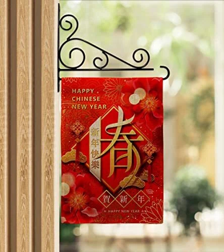 New Year Spring Garden Flag Set Wall Holder Lunar Good Luck Prosperous Season...