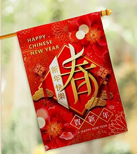 New Year Spring Garden House Flag Set Lunar Good Luck Prosperous Seasonal Arr...