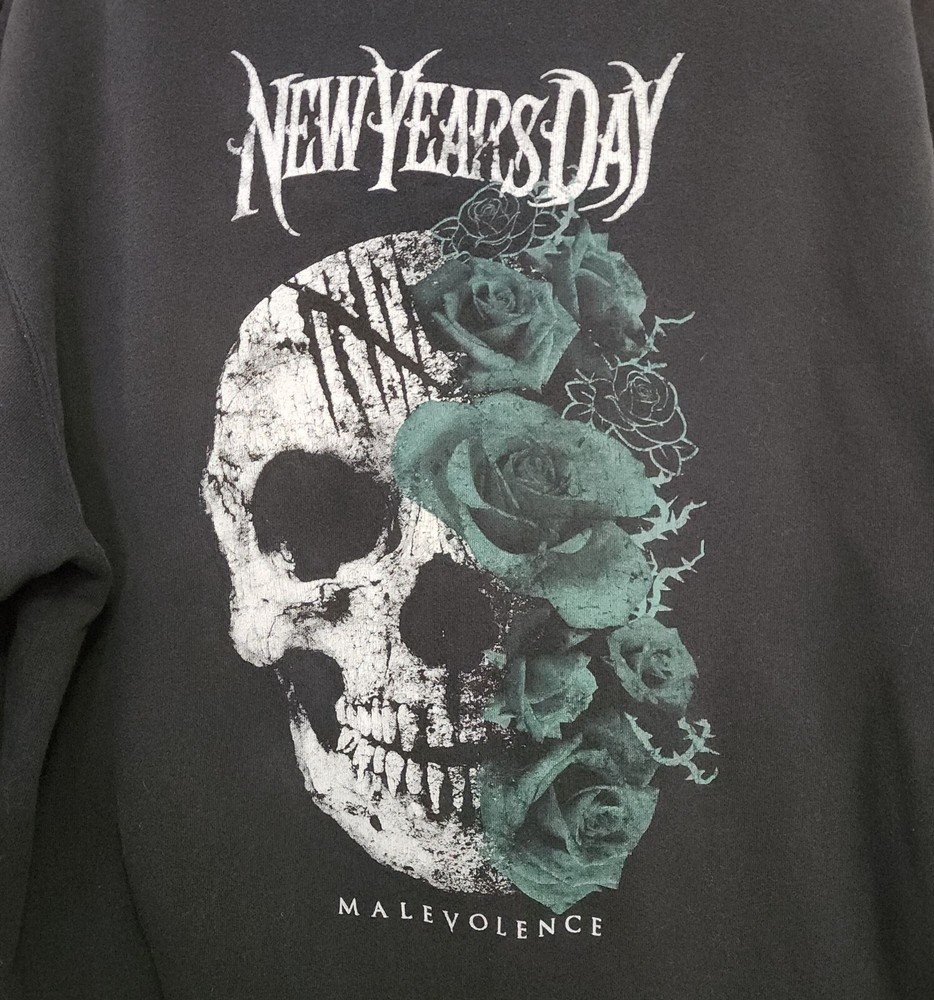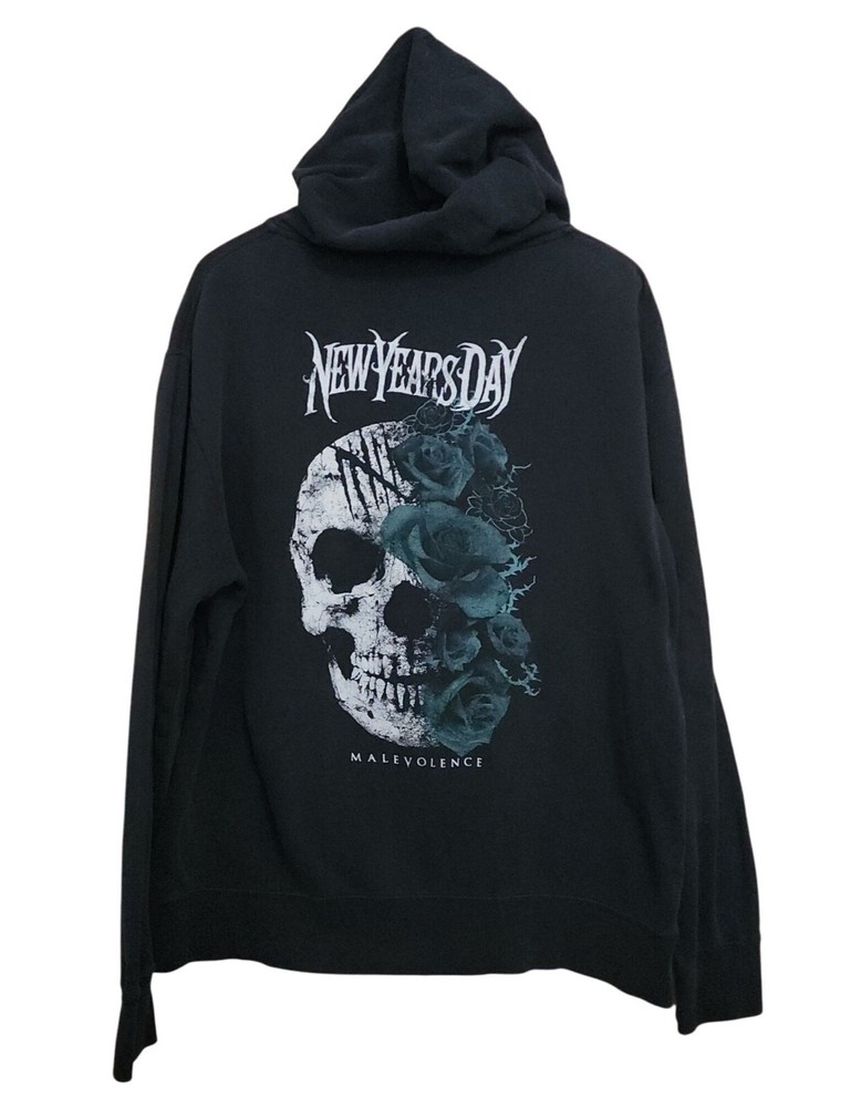 Unleash your edgy style with the New Years Day Malevolence Album Full Zip Hoodie. Perfect for fans of the band, this hoodie offers comfort and a bold design. Full zip hoodie comes with some holes just for that authentic metal rock feel, see pictures! • Full zip closure • Features Malevolence album artwork • Comfortable fit • Ideal for casual wear • Great gift for music lovers