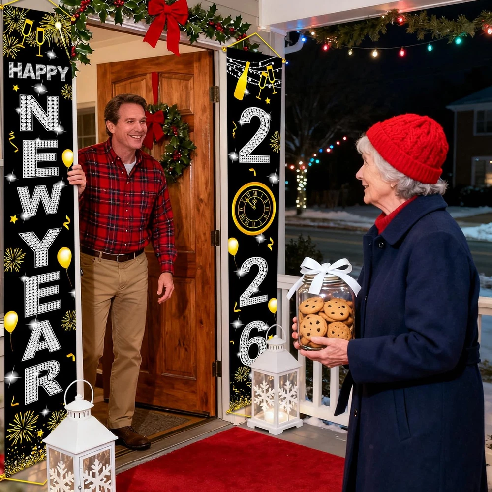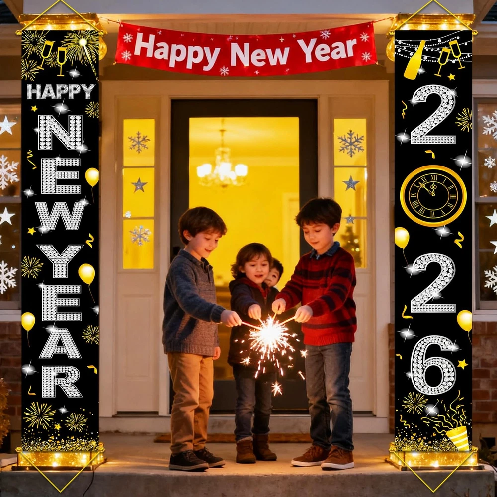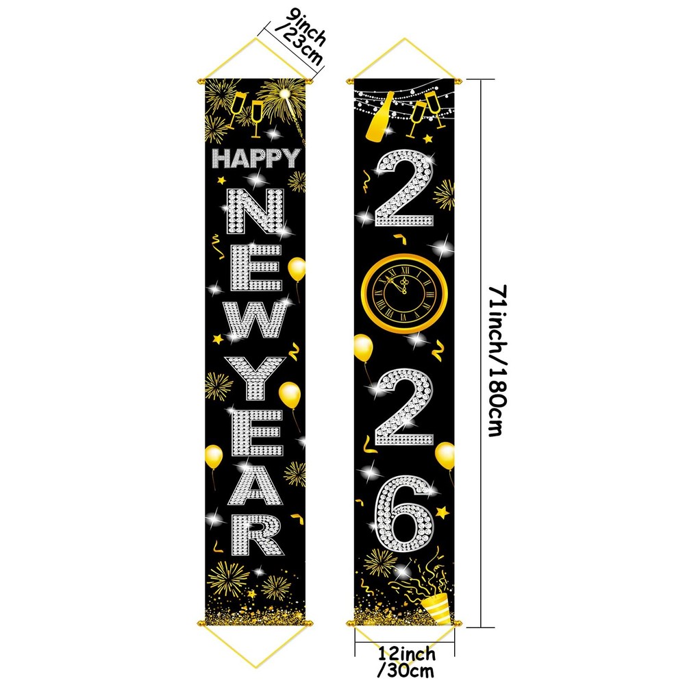 is a Great brand in Party supplies field. Since 2016, we have been committed to various theme party design and party decoration, providing a complete range of accessories and fashionable party kits for you to choose, saving your time and making your decoration easier to operate. Every party deserves to be extraordinary; we are dedicated to make a difference in all of your celebrations. Helping others create unforgettable moments is what we live for. We’re just happy that you’re happy. Features: Big Happy New Year Door Banner, 72x12 Inch NYE Decorations 2024 for Front Porch Decor, New Years Eve Party Supplies for Kids Teens Adults, New Year Party Favors in Silver Color Easy to Use: NO DIY, JUST HANG IT. Specifications: Product: Happy New Year Banner Material: Polyester fabric Package includes: 1 x 72x12 Inches New Year 2024 door banner 1 x 10 meters ribbon 1 x brand card Warm notes: Manual measurement, please allow slight errors on size. The colors may exist slight difference due to different screens. Warranty&Customer service: You can feel confident using our brand party suppliers, we take care of all quality-related issues. 24-Hour friendly customer support. We hope you never have such need, but if you do,our friendly and hassles-free service will work hard to put a smile back on your face. birthday kits make your party a piece of cake. Let's party! ❗Upgraded the poles and ropes on top and bottom to hang to secure position. 💗【BIG SIZE HAPPY NEW YEAR BANNER】The size of new year porch sign is 71" x 12".A shiny and sparkling New Year party door banner that will be the center of everyone's attention. Also, a perfect choice to add charm to your New Year's Eve decorations for 2026 and will create an extravagant party vibe and make your 2026NYE decorations memorable. It's also a wonderful addition to holiday parties and events, creating a festive backdrop for memorable gatherings. 🍻【HAPPY NEW YEAR DECORATIONS】This Happy New Year door banner is printed with elegant golden "Happy New Year" letters, and comes with fireworks and other party favor elements, representing the joyful atmosphere of the New Year and the theme of reunion. It is very suitable as the theme porch banner decoration for a New Year's party or new years eve party. The gold party decorations adds a touch of elegance that will surely impress your guests. ☀【WIDELY APPLICABLE NEW YEAR PARTY SUPPLIES 2026】Happy New Year 2026 background banner can be used as a New Year party door banner, New Year party fireplace decorations, New Year party dining room decor, a 2026 photo booth backdrop, New Year party gift, etc. It is also suitable for adorning front doors, courtyard, entrances, window, entrance, garage, patio, home, office, etc. This Happy New Year decorations banner will make your New Year's Eve party distinctive. 🥳【PRE-STRUNG AND REUSABLE NEW YEAR PARTY FAVORS】This Chinese new year decorations banner comes pre-strung and is already assembled and ready for use. There is no need for any DIY assembly or additional steps to set it up. The 2026 New Year's party banner is made of premium polyester fabric with a smooth surface that is comfortable to touch. It adopts advanced printing technology, ensuring beautiful and vivid New Year patterns. The banner can be reused many times at New Year-themed parties! 🎊【SATISFACTORY CUSTOMER SERVICE】Happy New Year! We take pride in providing excellent customer service, with 24-hour support to address any inquiries or concerns you may have. If you encounter any issues upon receiving the product, please feel free to contact us, and we will gladly assist you in resolving them. Thank you for choosing our product, and we are committed to ensuring your satisfaction.