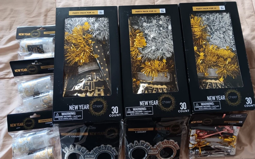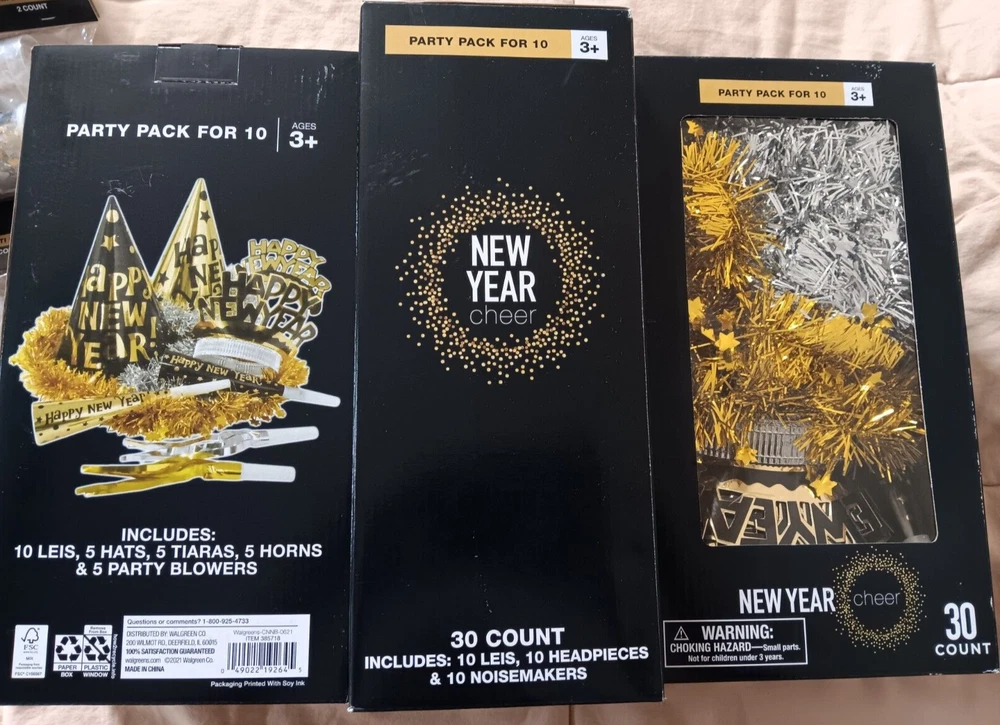 New Years Eve Day Party Lot Wedding Engagement Art Crafts Blower Popper Glasses (3) party pack boxes for 10***see pics for contents (1) party blowers 6 ct (2) party glasses (3) poppers ***2 count each