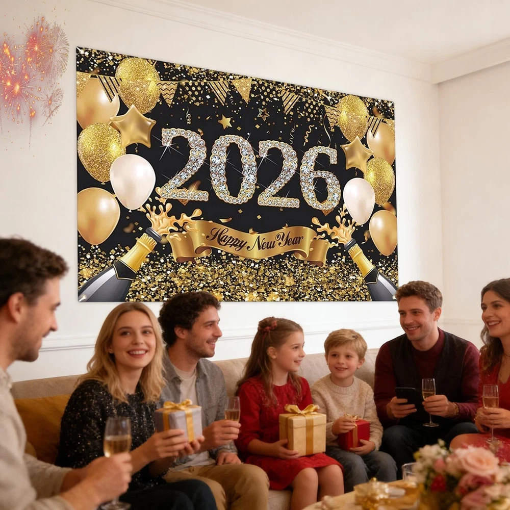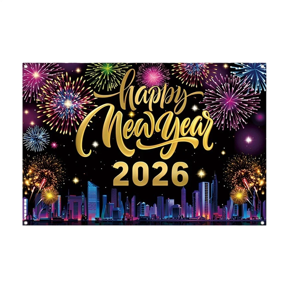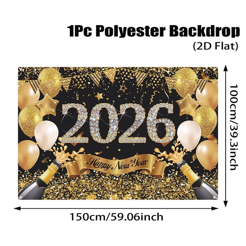 Bullet Points: Versatile Holiday Decor: This Happy New Year Banner serves as an eye-catching centerpiece for holiday home decor, enhancing festive party supplies with its vibrant design. Perfect for New Year decorations, it brings joy to corporate year-end celebrations and adds a cheerful touch to any 2026 New Year gathering, creating memorable moments in both personal and professional settings Long-Distance Visibility: Happy Year decorations utilize advanced print technology to deliver crisp and vibrant designs, ensuring the text banner stays legible even from afar, perfect for enhancing any major celebration with a professional touch Easy-to-Mount Banner: Featuring robust reinforced grommets and dependable suspension ropes the Happy New Year 2026 wall banner allows users to install it quickly transforming any space into a lively celebration area without complications Festive Interactive Element: New Years Decorations 2026 integrate a countdown banner into New Years Eve party supplies, allowing hosts to lead an exciting midnight countdown that boosts engagement and adds a special charm to your interactive New Year decor during holiday festivities Multi-Purpose Party Banner: Designed for versatility, the New Years Eve Decorations provide a banner ideal for banquets, community events, or conference rooms, enabling seamless integration into different themes and enhancing the festive ambiance with ease and creativity The 2026 Happy New Year Backdrop Sign is an ideal choice for enhancing your holiday celebrations. This large fabric sign serves as a stunning backdrop for various settings, including home, living room, garage, yard, porch, school, office, or farmhouse. Designed for versatility, it complements party supplies and creates a festive atmosphere indoors or outdoors. Use it as a photo booth background to capture memorable moments during the holiday season. The sturdy fabric ensures longevity and repeated use, making it suitable for seasonal events year after year. Whether decorating for a family gathering or community celebration, this backdrop sign adds charm and elegance to any space. Elevate your New Year decor with this key holiday accessory. Specification Expanded size: about 100x150cm/39.37x59.06 inches Material: polyester Gross weight: about 125g List 1 x background cloth Note: 1. There may be color differences in the product due to lighting effects and display angles, monitor color temperature, camera, ambient light, and photography skills. The actual product shall prevail! 2. Due to manual measurement, there may be errors in product size, please understand. 3. The product is a 2D pattern.