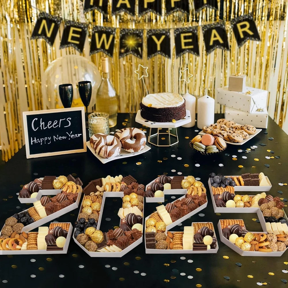 ABOUT THIS ITEM: The 2025 fillable tray is easy to clean and reusable, and it comes with 12 oil-absorbing sheets. Each Number measures about 10 2/5" x 6 4/5", perfect for displaying your favorite cheeses, meats, and other small appetizers. The box is made of quality cardboard, fill these numbers with your favorite treats. Let this 2025 Number Charcuterie Board inspire your celebration spreads as you count down to the new year. Our 2025 number kits are suitable for various occasions, such as New Year's Eve parties and other celebrations.