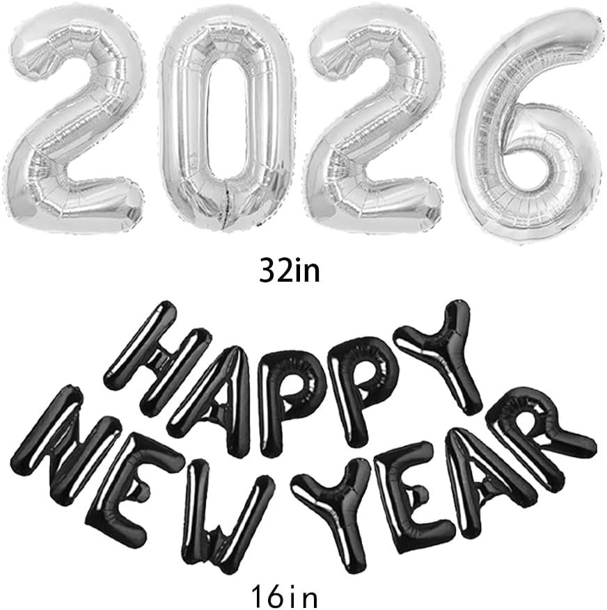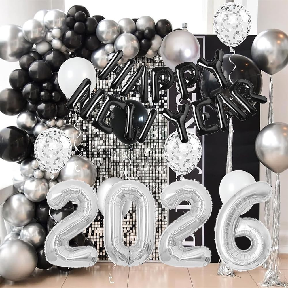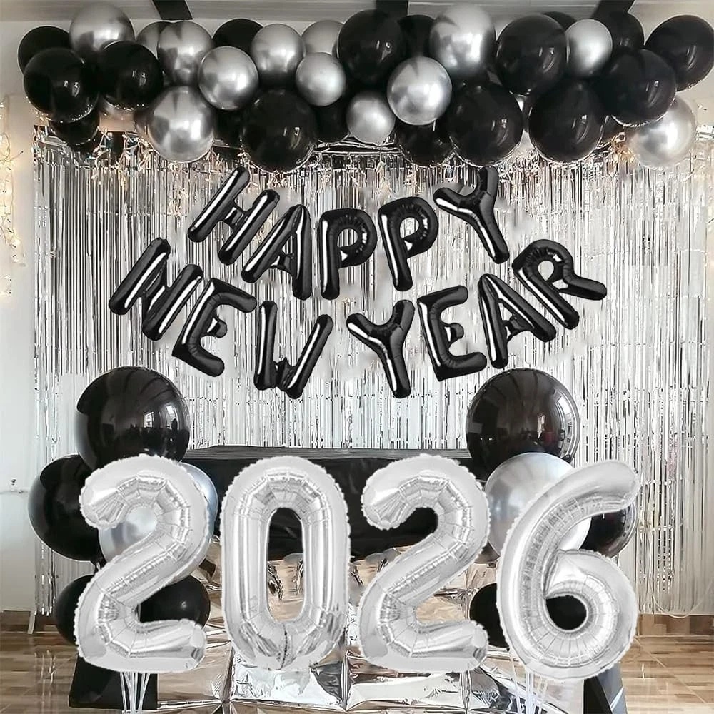 New Years Eve Party Supplies 2026, Black Silver New Year Decorations 2026 with Happy New Year Balloon Banner, 2026 Number Balloons, Foil Fringe Curtain, Star Foil Balloons for New Years Party Decor About this item: New Years Eve Party Supplies 2026, Black Silver New Year Decorations 2026 with Happy New Year Balloon Banner, 2026 Number Balloons, Foil Fringe Curtain, Star Foil Balloons for New Years Party Decor