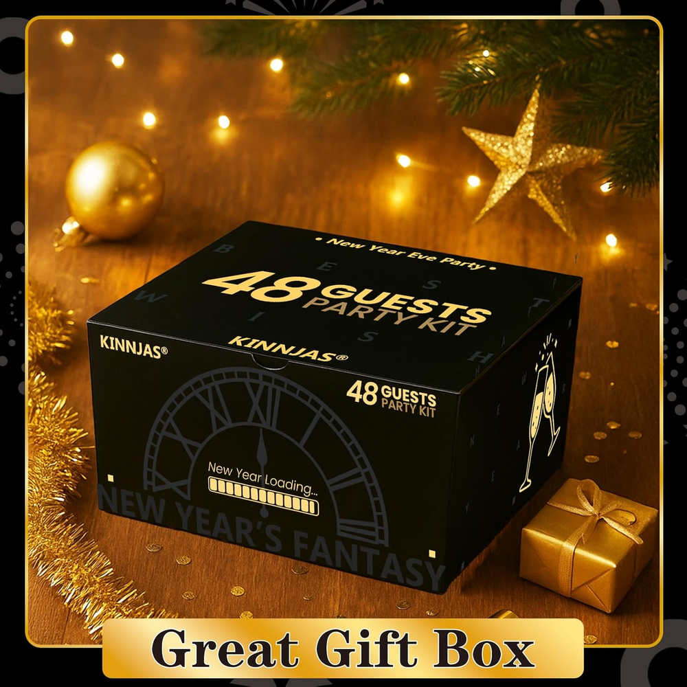 NEW YEARS PARTY SUPPLIES 2026 - This pack in cludes 25 Hats, 25 Glasses, 25 Les, 25 Beads, 25 Squakers, 25 Blowouts, a Happy New Year Backdrop, a New Years Eve Party Banner and a New Years Eve Backdrop HIGH QUALTIY NEW YEAR BACKDROP - The new year backdrop in this pack is made of high quality fabric, which is thick, durable and well printed REAL FOIL - As you see from the picture, the banner is shinny and bright. It's not printed by ink. It's real foil GREAT BOX - All the stuffs are packed in a great box. What's more Different parts are individually packaged in different bags. You don't need to worry about there is a mass in the box 100% GUARANTEED AND CUSTOMER SERVICE - We're absolutely sure you'll love our product. If, for some reason, you are not satisfied with the kit, we provide 45-day money-back. Your satisfaction means the world to us. So feel free to contact us if you have any question New Years Eve Party Supplies 2026 - Happy New Year Party Supplies Kit for 50 Guests, Including Hats, Glasses, Les, Beads, Squakers, a backdrop and a banner