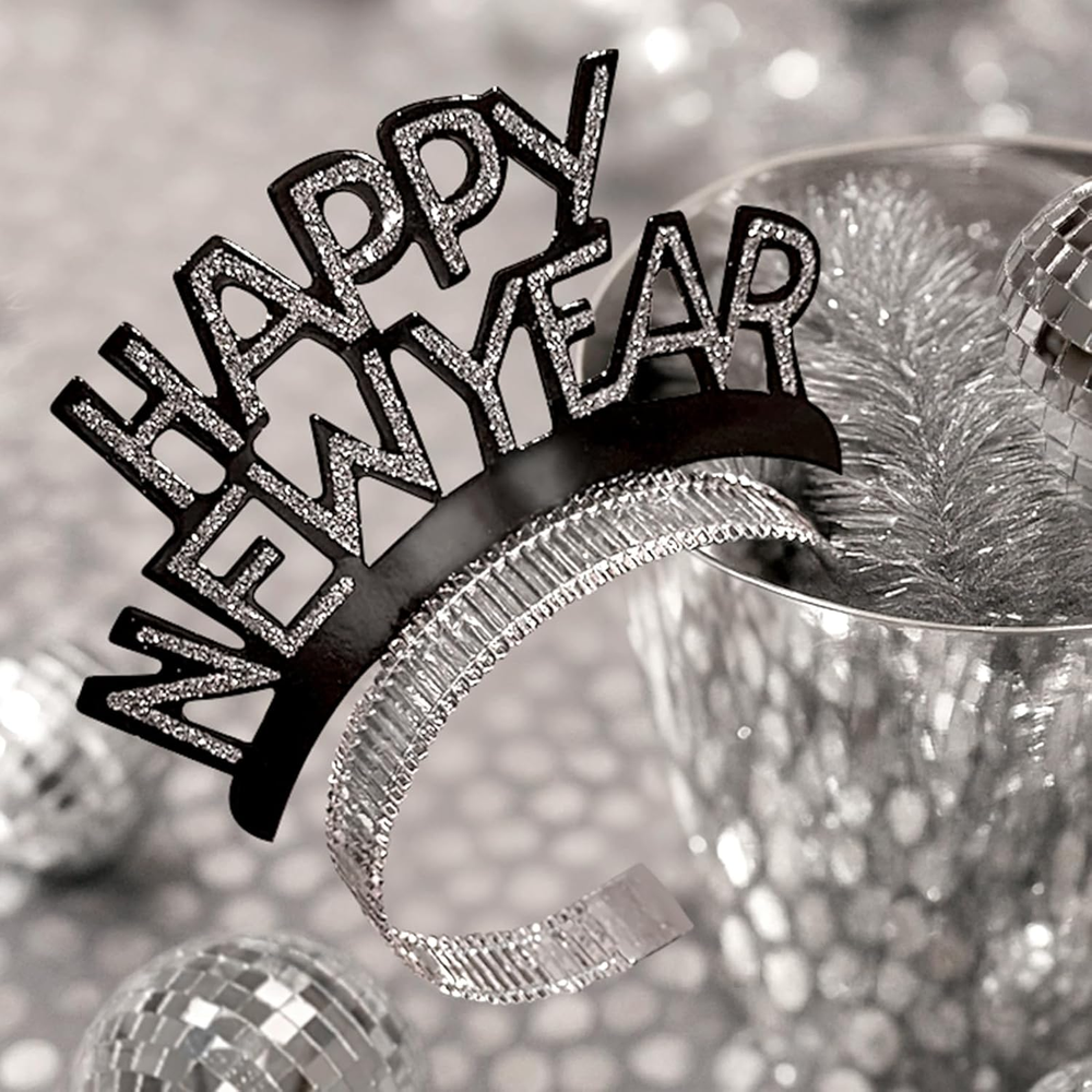 Complete 98-Piece Party Kit – Includes “Happy New Year” letter balloons, 3 silver fringe curtains, 13 disco balls, 39 balloons, 6 hats, 6 headbands, 6 glasses, and 12 noisemakers. 16" HAPPY NEW YEAR – Bold black letters serve as the centerpiece and elevate your New Year’s Eve decor. Shimmering Disco Balls - Add retro flair while reflecting light beautifully, creating sparkling highlights that elevate your New Year’s decor. Photo Booth Ready - Complete backdrop and props set creates a festive photo spot with sparkling decor and fun accessories. Black and Silver Theme - Bold black with shimmering silver accents adds sleek elegance and creates a sophisticated New Year’s Eve atmosphere.