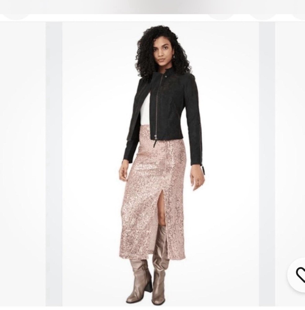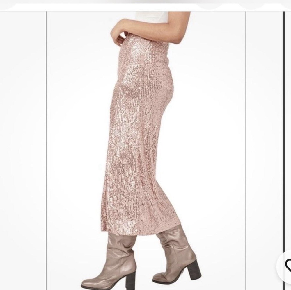 New Years Holiday Skirt!! Free People Ariana Sequin Maxi Skirt in Pink Champagne features a flat waistband, front slit, hidden side zipper and lined to mini skirt.
