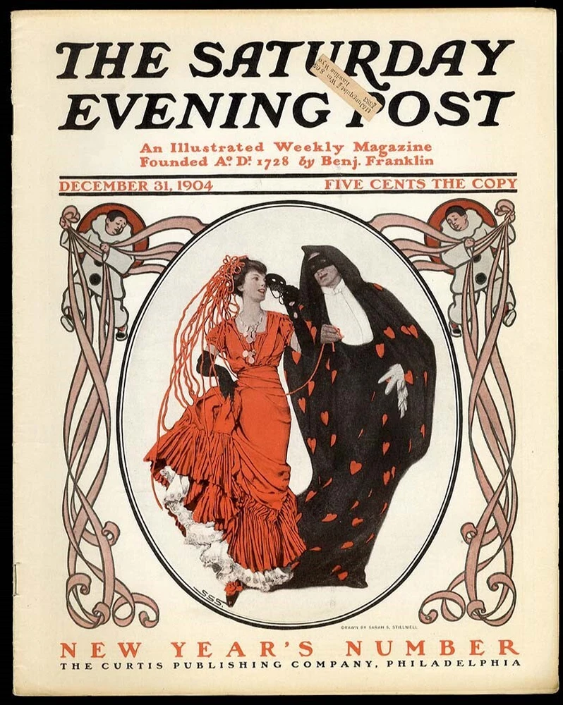 New Years Number SATURDAY EVENING POST 1904 Politics INSIDER TRADING Wall Street Original old magazine. Nice Sarah Stilwell Weber cover. Emperor of Japan getting pushy. Political issues of the day. Stories and advertisements. We try to give an accurate description, but there may be some edge tears or flaws not mentioned. If you have any questions, please ask. Please use SHOPPING CART for multiple purchases to save on shipping cost. International shipping is based on weight of package. Size is approx 11 1/4 x 14 1/4 inches Dated December 31, 1904 Very Good Condition. It is complete. There are 22 pages. To see more MAGAZINES ..clik here... 'MAGAZINES' . Powered by SixBit's eCommerce Solution
